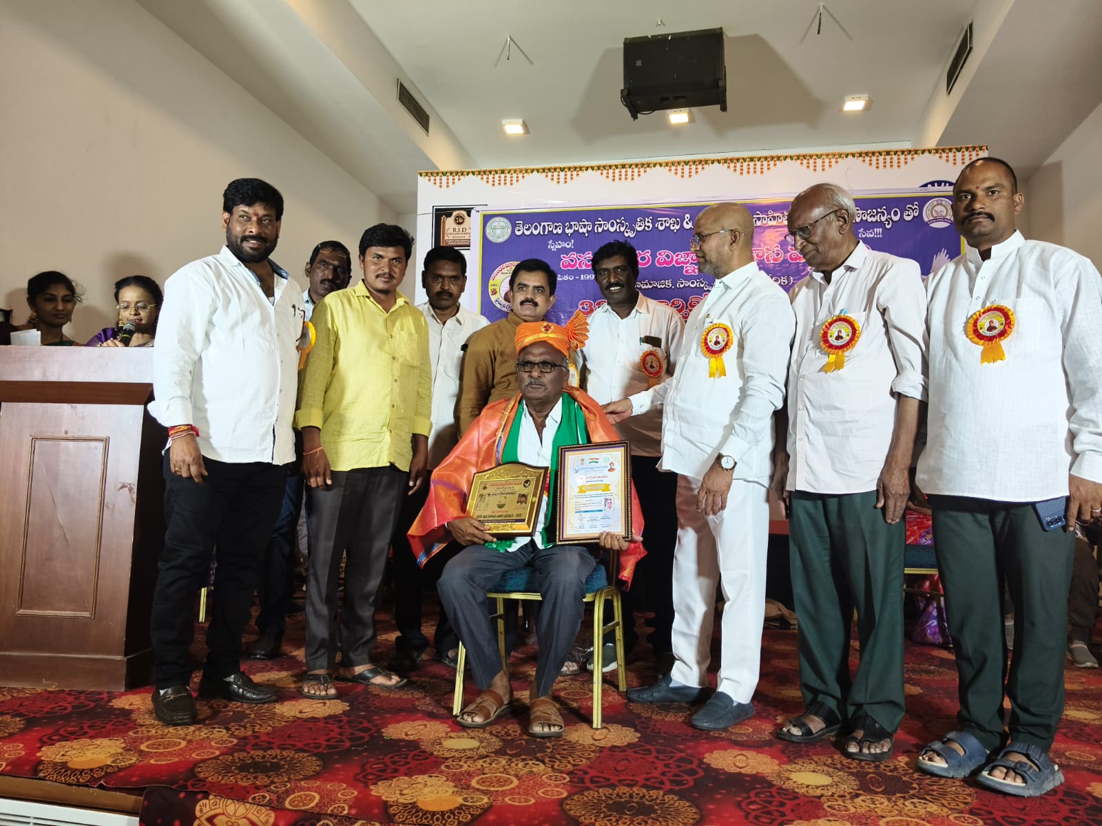 పయనించే సూర్యుడు న్యూస్ మార్చ్ 27 సాలూర : సాలూర మండల కేంద్రానికి చెందిన రైతు కేజీ.గంగారాంకు అరుగైన గౌరవం దక్కింది.వసుంధర విజ్ఞాన వికాస మండలి,వైద్యుల విజ్ఞాన వేదిక సారథ్యంలో హైదరాబాద్ నగరంలోని రవీంద్ర భారతిలో నిర్వహించిన జాతీయ అవార్డుల ప్రధానోత్సవంలో భాగంగా సాలూర గ్రామ రైతు కేజీ గంగారాంకు పుడమిపుత్ర అవార్డును అందజేశారు.వ్యవసాయ రంగంలో ఆయన రైతుల పక్షాన ఉంటూ రైతుల సమస్యలను ఎప్పటికప్పుడు మీడియా ద్వారా ప్రభుత్వానికి అధికారులకు తెలియజేస్తూ సమస్యల పరిష్కారానికి కృషి చేయడంతో పాటు అన్ని రకాల పంటలను పండించడంలో ఆయనకే సాటి అన్న విధంగా అవలంబిస్తున్న విధానాలను గుర్తించి ఉత్తమ రైతు కేజీ గంగారాంను జాతీయ పుడమిపుత్ర అవార్డుకు ఎంపిక చేశారు.గురువారం ఆయనకు ప్రముఖులు అవార్డును ప్రధానం చేశారు.జాతీయ అవార్డుకు ఎంపిక చేసిన ప్రతి ఒక్కరికి అవార్డు గ్రహీత ప్రత్యేక కృతజ్ఞతలు తెలిపారు.బోధన్ మరియు సాలూర మండలాల ప్రముఖులు,ప్రజాప్రతినిధులు,ప్రజలు అవార్డు గ్రహీతకు శుభాభినందనలు తెలిపారు.