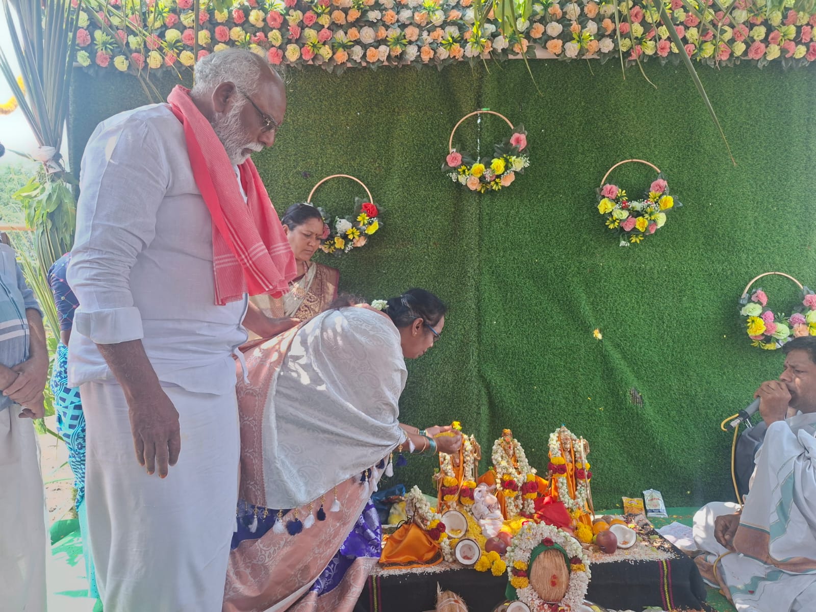 పయనించే సూర్యుడు మార్చ్ 28 ఆదోని నియోజకవర్గం క్రైమ్ రిపోర్టర్ కృష్ణ ఆదోని మున్సిపాలిటీ పరిధిలోని 35వ వార్డు న్యూ అమరావతి నగర్ కాలనీలో నూతనంగా నిర్మిస్తున్న శ్రీరామ దేవస్థానం ఆవరణములో మాజీ కౌన్సిలర్ వెల్లాల లలితమ్మ దంపతుల ఆధ్యర్యంలో కనులపండగలా రామ కళ్యాణం నిర్వహించడం జరిగింది.ఈ సందర్భంగా బిజెపి నాయకులు వెల్లాల మధుసూధనశర్మ మాట్లాడుతూ న్యూ అమరావతి నగర్ కాలనీలో దాదాపు ఐదు వందల కుటుంబాలు నివాసం ఉంటున్న ఒక్క దేవస్థానము కూడా లేకపోవడంతో పండుగలు శుభకార్యములు జరిగితే గుడికి వెళ్ళాలంటే దాదాపు కిలోమీటరు పైన వెళ్ళవలసి వచ్చేదని, ఇటువంటి సమస్యను ఎమ్మెల్యే డాక్టర్ పివి పార్థసారథిదృష్టికి తీసుకువెళ్ళగానే వెంటనే స్పందించి మున్సిపల్ అధికారులకు పిలిపించుకుని న్యూ అమరావతి నగర్ కాలనీలో దేవస్థానము నిర్మాణానికి అనుకూలమైన స్థలం ఉంటే పరిశీలన కేటాయింవలసినదిగా ఆదేశాలు ఇచ్చారు.వెంటనే స్పందించిన అప్పటి మున్సిపల్ కమిషనర్ కృష్ణ , టౌన్ ప్లానింగ్ ఆఫీసర్ మద్ధయ్య అమరావతి నగర్ కాలనీలో పర్యటించి గుడికి స్థలాన్ని కేటాయించడం జరిగిందని మధుసూదన శర్మ తెలిపారు.ఈరోజు గుడి నిర్మాణం శరవేగంగా జరుగుతోందని గుడి నిర్మాణానికి సహకరిస్తున్న దాతలకు ధన్యవాదములు తెలుపుకుంటున్నామని మధుసూదన శర్మ తెలిపారు. ఈరోజు శ్రీరామకళ్యాణము కూడా ఈ గుడి ఆవరణలోనే నిర్వహించడం జరిగిందని మధుసూదన శర్మ తెలియచేసారు.పెద్ధ సంఖ్యలో భక్తులు పాల్గొన్నారని, కళ్యాణము అనంతరము అన్నదాన కార్యక్రమం నిర్వహించడం జరిగిందని మాజీ కౌన్సిలర్ లలితమ్మ తెలిపారు. వివాహానికి యశోదమ్మ రామాంజనేయులు, పరుశురాముడు, శైలజమ్మ దంపతులు పంచలోహ విగ్రహాలు తయారు చేయించారని వారి కుటుంబానికి శ్రీరామ చంద్రుల వారి అనుగ్రహం ఉండాలని కోరుకుంటున్నామని లలితమ్మ తెలిపారు. ఈ కార్యక్రమం దిగ్విజయంగా జరగడానికి కృషి చేసిన న్యూ అమరావతి నగర్ యువకులకు, హృదయపూర్వక కృతజ్ఞతలు తెలుపుకుంటున్నామని లలితమ్మ తెలిపారు.