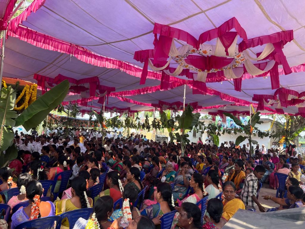 పయనించే సూర్యుడు మార్చి 28, (చింతకాని మండలం రిపోర్టర్. వేర్పుల కోటేశ్వరరావు). చింతకాని మండల కేంద్రంలో శుక్రవారం శ్రీ సీతారామ స్వామి వారి కళ్యాణ మహోత్సవం ఘనంగా నిర్వహించారు. స్థానిక రామాలయం ఆవరణలో అర్చకులు ఫణిహారం గోపిచార్యులు శాస్త్రోక్తంగా ఈ కార్యక్రమాన్ని నిర్వహించారు. ఈ సందర్భంగా చింతకాని సర్పంచ్ కిలారు మనోహర్ బాబు దంపతులు, చెన్నకేశవ స్వామి వారి కళ్యాణ కమిటీ చైర్మన్ యండపల్లి శ్రీనివాసరావు దంపతులు, మాజీ దేవస్థానం చైర్మన్ మల్లెల సత్యనారాయణ దంపతులు తలంబ్రాలను సమర్పించి, కుటుంబ సమేతంగా కళ్యాణ మహోత్సవంలో పాల్గొన్నారు. అనంతరం స్వామి వారి సన్నిధిలో మహా అన్నదాన కార్యక్రమం నిర్వహించి భక్తులకు ప్రసాదం పంపిణీ చేశారు. కార్యక్రమంలో సీతారామ కళ్యాణ కమిటీ సభ్యులు, మత్స్య శాఖ అధ్యక్షుడు జలగణబోయిన కృష్ణ, ఆకుల చంద్రయ్య, బండి ప్రసాద్, దేశబోయిన ఉపేందర్, గడ్డం కోటేశ్వరరావు, కోల నాగేశ్వరావు తదితరులు పాల్గొన్నారు.ఇక గ్రామ పెద్దలు కిలారు జగన్మోహనరావు, దమ్మాలపాటి వెంకటేశ్వర్లు, పొనుగోటి రత్నాకర్, బండి సుభద్రతో పాటు పాత్రికేయులు చిట్టూరి నరేష్, దిశ సురేందర్ మరియు చెన్నకేశవ స్వామి కళ్యాణ కమిటీ సభ్యులు, వార్డు సభ్యులు, మాజీ ఎంపీటీసీ మేకనబోయిన రాంబాబు తదితరులు హాజరయ్యారు.పెద్ద సంఖ్యలో భక్తులు పాల్గొని కార్యక్రమాన్ని విజయవంతం చేశారు.