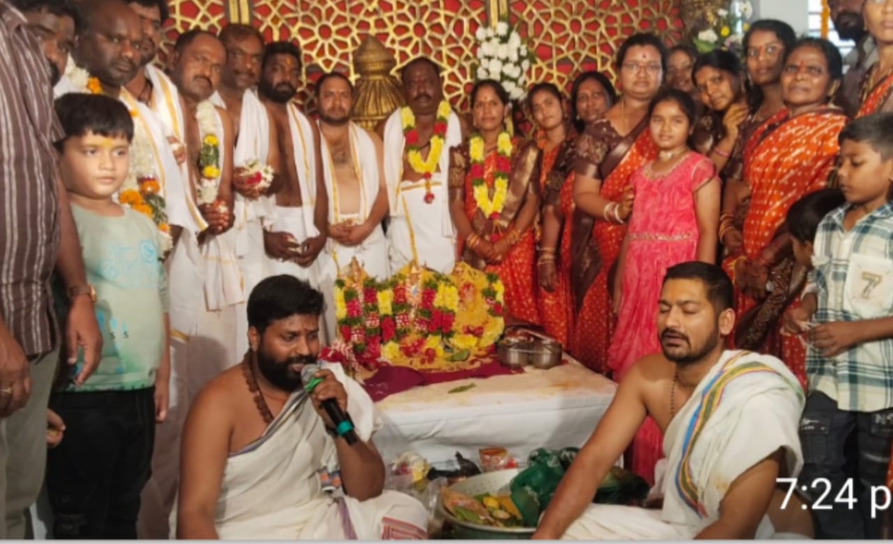 పయనించే సూర్యుడు న్యూస్ మార్చ్ 28 మెదక్ జిల్లా చేగుంట మండలం ప్రతినిధి కాశబోయిన మహేష్ చేగుంట పట్టణం లో శ్రీరామనవమి సందర్భంగా శ్రీ సీతారాముల కళ్యాణ మహోత్సవం సర్పంచ్ సండ్రుగు స్రవంతి సతీష్ పాలక వర్గం ఆధ్వర్యoలో హనుమాన్ ఆలయంలో కన్నుల పండుగగా శుక్రవారం రోజున జరిగింది .కళ్యాణ మహోత్సవ కార్యక్రమాని పంతులు రాఘవ శర్మ కళ్యాణం జరిపించారు అనంతరం వారు మాట్లాడుతూ సర్పంచ్ సండ్రుగు స్రవంతి సతీష్ సీతారాముల కళ్యాణం అంగరంగ వైభవంగా నిర్వహించారు చేగుంట గ్రామ ప్రజల క్షేమం కొరకు లక్ష్మీ గణపతి హోమం ధర్మతాయ హోమం చేసుకొని స్వామివారికి అంగరంగ వైభవంగా ఈరోజు సీతారాముల కళ్యాణం జరిగినది సర్పంచ్ స్రవంతి సతీష్ చేగుంట ప్రజల క్షేమం కొరకు తలంబ్రాలు రెండు ముత్యాలు ప్రతి ఇంటికి చేరాలని ప్రతి ఆడబిడ్డ రాముని యొక్క అనుగ్రహం పొందాలని వారు సంకల్పించినారు. అమ్మవారికి వెండి బార్సింగాలు పావుతులం వస్తే బ్రహ్మం ఇచ్చారు ఆ రాముల వారి అనుగ్రహం ఎప్పుడూ ఉండాలని ఆయన దీవించారు .గ్రామ ప్రజలు హాజరై ప్రత్యేక పూజలు నిర్వహించారు. ఈ కార్యక్రమంలో గ్రామ సర్పంచ్ సండ్రుగు స్రవంతి సతీష్, పాలకవర్గ సభ్యులు, గ్రామ పెద్దలు గ్రామ ప్రజలు అందరూ పాల్గొని స్వామివారిని దర్శించుకుని తీర్ధ ప్రసాదాలను, అన్నప్రసాదాన్ని స్వీకరించారు.