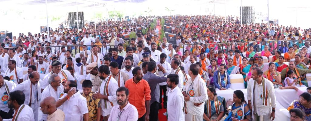 పయనించే సూర్యుడు న్యూస్ చౌటుప్పల్ మార్చి 28. చౌటుప్పల్ పట్టణంలోని బస్టాండ్ ఆవరణలో శ్రీరామనవమి వేడుకలు ఘనంగా జరిగాయి శ్రీరామనవమి వేడుకల్లో పాల్గొని శ్రీ సీతారామచంద్ర స్వాముల వారికి పట్టు వస్త్రాలు సమర్పించారు గౌరవ మునుగోడు శాసనసభ్యులు కోమటిరెడ్డి రాజగోపాల్ రెడ్డి దంపతులు శ్రీరామనవమి వేడుకలకు హాజరైన పుణ్య దాంపతులకు ఘన స్వాగతం పలికారు మున్సిపాలిటీ పాలకవర్గ సభ్యులు శ్రీ సీతారామచంద్రస్వామి కళ్యాణ వేడుకల పాలకవర్గ సభ్యులు… పట్టు వస్త్రాలు సమర్పించిన అనంతరం ప్రత్యేక పూజలు నిర్వహించారు పట్టు వస్త్రాలు సమర్పించిన దంపతులకు వేద ఆశీర్వచనం చేసారు అర్చకులు అనంతరం చౌటుప్పల్ మున్సిపాలిటీ పరిధిలోని తంగడపల్లి లో శ్రీ రామనవమి వేడుకల్లో పాల్గొని తన సతీమణి శ్రీమతి కోమటిరెడ్డి లక్ష్మి రాజ్ గోపాల్ రెడ్డి కలిసి ప్రత్యేక పూజలు నిర్వహించారు.