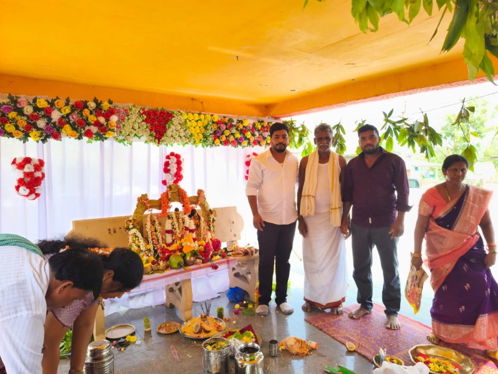 పయనించే సూర్యుడు న్యూస్ :మార్చి 28,తల్లాడ రిపోర్టర్ తల్లాడ మండల పరిధిలోని గ్రామంలో శ్రీరామనవమి సందర్భంగా శ్రీ సీతారామచంద్ర స్వామి వారి కళ్యాణ మహోత్సవంలో నూతనకల్ గ్రామ సర్పంచ్ తేలపుట్ట శ్రీదేవి రమేష్ దంపతులు, జిల్లా కాంగ్రెస్ పార్టీ యువజన నాయకులు అడపా అనిల్ చౌదరి పాల్గొని ప్రత్యేక పూజలు నిర్వహించారు, అనంతరం సీతారామచంద్ర స్వామి వారి కళ్యాణాన్ని వీక్షించిన జిల్లా కాంగ్రెస్ పార్టీ యువజన నాయకులు అడపా అనిల్ చౌదరి అనంతరం అన్నదాన కార్యక్రమాన్ని ఆలయ కమిటీ సభ్యులతో కలిసి ప్రారంభించారు,వారు ఈ సందర్భంగా అనిల్ చౌదరి మాట్లాడుతూ శ్రీ సీతారామచంద్ర స్వామి వారి దయతో గ్రామ, మండల తెలంగాణ రాష్ట్ర ప్రజలు ఆయురారోగ్యాలతో సుఖశాంతులతో ఉండాలని కోరుకున్నారు. అనంతరం :- గ్రామ పెద్దలు కమిటీ ఆధ్వర్యంలో సర్పంచ్ తేలపుట్ట శ్రీదేవి దంపతులను జిల్లా నాయకులు అడపా అనిల్ చౌదరి ను శాలువా కప్పి ఘనంగా సన్మానించారు. ఈ కార్యక్రమంలో వార్డ్ సభ్యులు వీరబాబు ముదిరాజు, కళ్యాణపు వెంకటయ్య, శ్రీకాంత్,ప్రసాద్, నరేష్. ప్రేమ్ కుమార్, గోపరాజు,తదితరులు పాల్గొన్నారు..
