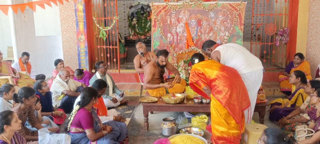 పయనించే సూర్యుడు మార్చి 28 కరీంనగర్ న్యూస్: కరీంనగర్ నగరపాలక సంస్థ 8వ డివిజన్ అలుగునూర్ పరిధిలోని శ్రీ వెంకటేశ్వర కాలనీలో గల శ్రీ పట్టాభిరామ , శ్రీ పంచముఖ ఆంజనేయస్వామి దేవాలయంలో శుక్రవారం రోజున శ్రీరామనవమి సందర్భంగా శ్రీ సీతారామ కళ్యాణ మహోత్సవ వేడుక లుఅంగరంగ వైభవంగా నిర్వహించారు. వేద పండితులు తిరునగిరి వెంకటాద్రి స్వామి, తిరునగిరి హర్షవర్ధన్ స్వామి ల వేదమంత్రోత్సవాల తో శ్రీ సీతారాముల కళ్యాణ మహోత్సవ వేడుక కన్నుల పండుగ గా కొనసాగింది. ఈ సందర్భంగా వేద పండితులు తిరునగరి వెంకటాద్రి స్వామి మాట్లాడుతూ ధర్మరక్షణలో, ఆదర్శ పరిపాలనకు నిదర్శనం మన శ్రీరామచంద్రుడన్నారు. ధర్మాన్ని కాపాడేందుకు జీవితాన్ని త్యాగం చేసిన మహోన్నత ప్రజా పాలకుడు శ్రీ రామచంద్ర ప్రభువేనన్నారు. హిందూ బంధువులందరూ రాముడి అడుగుజాడల్లో నడుస్తూ , ధర్మబద్ధంగా జీవిస్తూ, ఐక్యంగా ముందు కొనసాగాలన్నారు. ఆర్ఎస్ఎస్ ఆధ్వర్యంలో ఏప్రిల్ 18న తిమ్మాపూర్ మండలం రామకృష్ణ కాలనీ ( సుభాష్ నగర్ ) లో నిర్వహిస్తున్న హిందు సమ్మేళనం ను విజయవంతం చేయాలని పిలుపునిచ్చారు. హిందూ ఐక్యతనే హిందూ సమాజానికి పెద్ద బలం లాంటిదన్నారు. ఈ సందర్భంగా ఆలయ కమిటీ కళ్యాణ మహోత్సవానికి అశేష సంఖ్యలో తరలివచ్చిన భక్తులకుతీర్థ, ప్రసాదము, అన్న ప్రసాద వితరణ చేపట్టారు . కళ్యాణ మహోత్సవ వేడుకల్లో పాల్గొన్న డివిజన్ కార్పొరేటర్ కాల్వ మల్లేశం, మహాత్మా నగర్ సర్పంచ్ పొన్నాల సంపత్, మాజీ ఎంపీపీ కుంట రాజేందర్ లను దేవాలయ కమిటీ సన్మానించింది. ఈ కార్యక్రమంలో శ్రీ పంచముఖ హనుమాన్ దేవాలయ ధర్మకర్తల సేవాసమితి అధ్యక్షులు చిందం నరసయ్య, గడప శేఖర్, సల్ల రాజయ్య, మల్లేశం, సిరిపురం శ్రీనివాస్, చిందం ముత్యం , ఐతం వెంకన్న, శంకర శర్మ , బూట్ల కర్ణాకర్ , రాజేందర్, సుధాకర్ రెడ్డి, రాజిరెడ్డి, కుమార్, మొగిలి , మధు, మహేందర్, మృత్యుంజయం , నారాయణ, భరత్, చిందం అంజి, కొత్తూరి శ్రీనివాస్ , సాయి, అక్షయ్ , రేవంత్ లతోపాటు మహిళా భక్తులు తదితరులు అశేష సంఖ్యలో పాల్గొన్నారు.