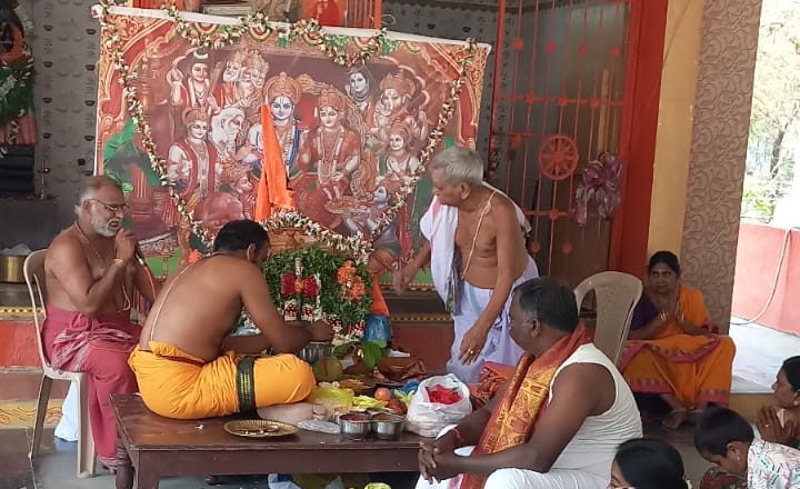 పయనించే సూర్యుడు మార్చి 28 కరీంనగర్ న్యూస్: కరీంనగర్ నగరపాలక సంస్థ 8వ డివిజన్ అలుగునూర్ పరిధిలోని శ్రీ వెంకటేశ్వర కాలనీలో గల శ్రీ పట్టాభిరామ , శ్రీ పంచముఖ ఆంజనేయస్వామి దేవాలయంలో శుక్రవారం రోజున శ్రీరామనవమి సందర్భంగా శ్రీ సీతారామ కళ్యాణ మహోత్సవ వేడుక లుఅంగరంగ వైభవంగా నిర్వహించారు. వేద పండితులు తిరునగిరి వెంకటాద్రి స్వామి, తిరునగిరి హర్షవర్ధన్ స్వామి ల వేదమంత్రోత్సవాల తో శ్రీ సీతారాముల కళ్యాణ మహోత్సవ వేడుక కన్నుల పండుగ గా కొనసాగింది. ఈ సందర్భంగా వేద పండితులు తిరునగరి వెంకటాద్రి స్వామి మాట్లాడుతూ ధర్మరక్షణలో, ఆదర్శ పరిపాలనకు నిదర్శనం మన శ్రీరామచంద్రుడన్నారు. ధర్మాన్ని కాపాడేందుకు జీవితాన్ని త్యాగం చేసిన మహోన్నత ప్రజా పాలకుడు శ్రీ రామచంద్ర ప్రభువేనన్నారు. హిందూ బంధువులందరూ రాముడి అడుగుజాడల్లో నడుస్తూ , ధర్మబద్ధంగా జీవిస్తూ, ఐక్యంగా ముందు కొనసాగాలన్నారు. ఆర్ఎస్ఎస్ ఆధ్వర్యంలో ఏప్రిల్ 18న తిమ్మాపూర్ మండలం రామకృష్ణ కాలనీ ( సుభాష్ నగర్ ) లో నిర్వహిస్తున్న హిందు సమ్మేళనం ను విజయవంతం చేయాలని పిలుపునిచ్చారు. హిందూ ఐక్యతనే హిందూ సమాజానికి పెద్ద బలం లాంటిదన్నారు. ఈ సందర్భంగా ఆలయ కమిటీ కళ్యాణ మహోత్సవానికి అశేష సంఖ్యలో తరలివచ్చిన భక్తులకుతీర్థ, ప్రసాదము, అన్న ప్రసాద వితరణ చేపట్టారు . కళ్యాణ మహోత్సవ వేడుకల్లో పాల్గొన్న డివిజన్ కార్పొరేటర్ కాల్వ మల్లేశం, మహాత్మా నగర్ సర్పంచ్ పొన్నాల సంపత్, మాజీ ఎంపీపీ కుంట రాజేందర్ లను దేవాలయ కమిటీ సన్మానించింది. ఈ కార్యక్రమంలో శ్రీ పంచముఖ హనుమాన్ దేవాలయ ధర్మకర్తల సేవాసమితి అధ్యక్షులు చిందం నరసయ్య, గడప శేఖర్, సల్ల రాజయ్య, మల్లేశం, సిరిపురం శ్రీనివాస్, చిందం ముత్యం , ఐతం వెంకన్న, శంకర శర్మ , బూట్ల కర్ణాకర్ , రాజేందర్, సుధాకర్ రెడ్డి, రాజిరెడ్డి, కుమార్, మొగిలి , మధు, మహేందర్, మృత్యుంజయం , నారాయణ, భరత్, చిందం అంజి, కొత్తూరి శ్రీనివాస్ , సాయి, అక్షయ్ , రేవంత్ లతోపాటు మహిళా భక్తులు తదితరులు అశేష సంఖ్యలో పాల్గొన్నారు.
