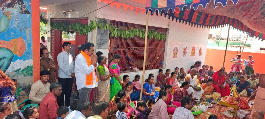 పయనించే సూర్యుడు రిపోర్టర్ జగయ్యపేట నియోజకవర్గం ఇన్చార్జి చేని రాంబాబు ఎన్టీఆర్ జిల్లా జగయ్యపేట్ట నియోజకవర్గం మార్చి 29 జగ్గయ్యపేట పట్టణంలోని కమ్మర బజార్ 26 వార్డులోని శ్రీ కోదండ రామాలయం దేవాలయం వద్ద స్థానిక ప్రజలు గోగుల వెంకయ్య దంపతులు మరియు కమిటీ సభ్యుల ఆధ్వర్యంలో నిర్వహించిన కళ్యాణ మహోత్సవానికి ముఖ్యఅతిథిగా వట్టెం మనోహర్ పాల్గొనడం జరిగింది ఈ కార్యక్రమంలో స్థానిక ప్రాంత నాయకులు మున్సిపల్ వైస్ చైర్మన్ తుమ్మల ప్రభాకర్ రావు కూడా పాల్గొని శ్రీరామనవమి కళ్యాణము వేడుకలు ఘనంగా నిర్వహించుకుని భక్తులకు తీర్థప్రసాదాలు అందజేయడం జరిగింది ఈ సందర్భంగా వట్టె మనోహర్ మాట్లాడుతూ జగ్గయ్యపేట నియోజకవర్గ ప్రజలకు మరియు దేశంలోని హిందువులందరికీ శ్రీరామనవమి శుభాకాంక్షలు ఆ శ్రీరాముడు సీతమ్మ తల్లి ఆశీస్సులు అందరికీ ఉండాలని రాబోయే రోజుల్లో ప్రజలందరికీ మంచి జరగాలని ఆ రాముడిని కోరుకున్నట్లు పత్రిక ముఖంగా తెలియజేశారు