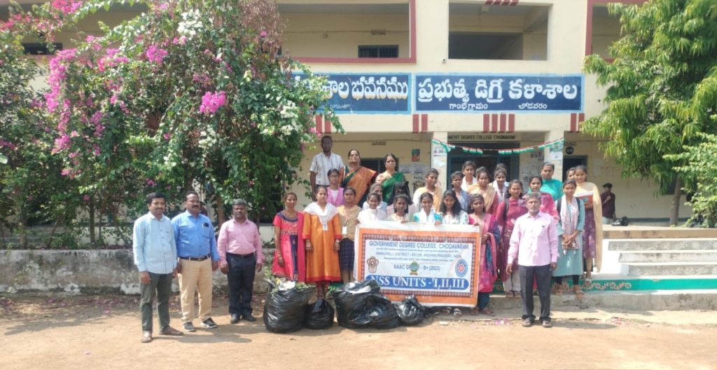 పయనించే సూర్యుడు 29-03-2026 చోడవరం రిపోర్టర్ :శ్రవణ్ రాజ్ జాతీయ సేవా పథకం వారి ఆధ్వర్యంలో ” సోర్స్ సిగ్రిగేషన్ జీరో వేస్టేజ్ లైఫ్ స్టైల్స్ ” స్థానిక ప్రభుత్వ డిగ్రీ కళాశాలలో జాతీయ సేవా పథకం ఒకటి రెండు మూడు వారి నిర్వహణలో 28.03.2026 రోజున” సోర్స్ సిగ్రిగేషన్ జీరో వేస్టేజ్ లైఫ్ స్టైల్స్ ” మూల విభజన మరియు సున్నా వ్యర్థ జీవనశైలి ” ఆంధ్రప్రదేశ్ రాష్ట్ర ప్రభుత్వము ప్రతిష్టాత్మకంగా చేపడుతున్న మరియు కళాశాల విద్యాశాఖ వారి ఆదేశాల మేరకు “స్వచ్ఛ ఆంధ్ర స్వర్ణ ఆంధ్ర” ప్రతి నెల మూడవ శనివారం లో భాగంగా ఈ రోజున కార్యక్రమాలను కళాశాల వైస్ ప్రిన్సిపాల్ఐ వి వి సత్యవతి ప్రారంభించారు. ఈ కార్యక్రమంలో స్వచ్ఛ ఆంధ్ర ప్రతిజ్ఞ కార్యక్రమాన్ని కళాశాల అధ్యాపకులు మరియు విద్యార్థుల చేత కార్యక్రమాన్ని నిర్వహించారు. సోర్స్ సిగ్రిగేషన్ మరియు వేస్టేజీ లైఫ్ స్టైల్స్ పై విద్యార్థులకు క్విజ్ కార్యక్రమాన్ని నిర్వహించారు. అనంతరము కళాశాల ప్రాంగణము మరియు కళాశాల తరగతి గదులు, కళాశాల టాయిలెట్స్ పరిసర ప్రాంతాలు పరిశుభ్రంగా ఉండేటట్టు, పీజీ ల్యాబ్స్ గార్డెన్స్ అందంగా తయారు చేశారు. ఐ క్య్ ఏ సి సమన్వయకర్త డాక్టర్ నారాయణ మూర్తి, ఈ కార్యక్రమానికి జాతీయ సేవా పథకం ప్రోగ్రామ్ ఆఫీసర్స్ డాక్టర్ రత్నభారతి, డి.మాల్యాద్రి,బి.పిచ్చమ్మ, సీనియర్ అద్యాపక్ టు అధ్యాపకులు హెచ్ సుదీర్, వి.అప్పలనాయుడు, డాక్టర్ కృష్ణారావు, డాక్టర్ రాధాకృష్ణ, డాక్టర్ జ్యోతి, డాక్టర్ సంధ్య , డాక్టర్ సూర్యవతి, డాక్టర్ వాసు దేవరాజు, డాక్టర్ శ్రీవెంకటేష్,సరస్వతీ, రామలక్ష్మి, కోమల, కామర్స్ శ్రీనివాసరావు, డాక్టర్ సంతోష్, హేమ గణేష్,ఈ కార్యక్రమంలో అధ్యాపక బృందం పాల్గొన్నారు.