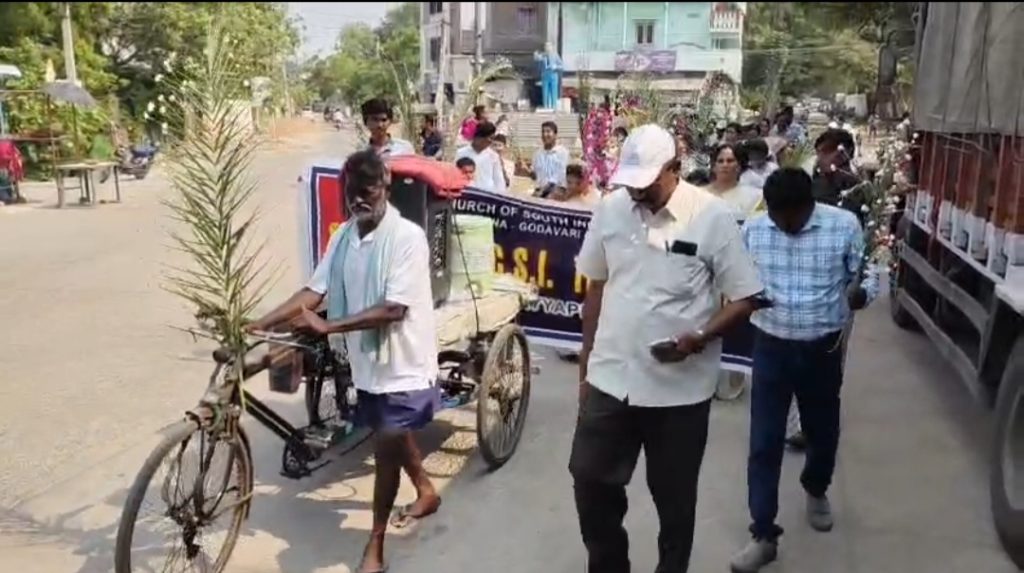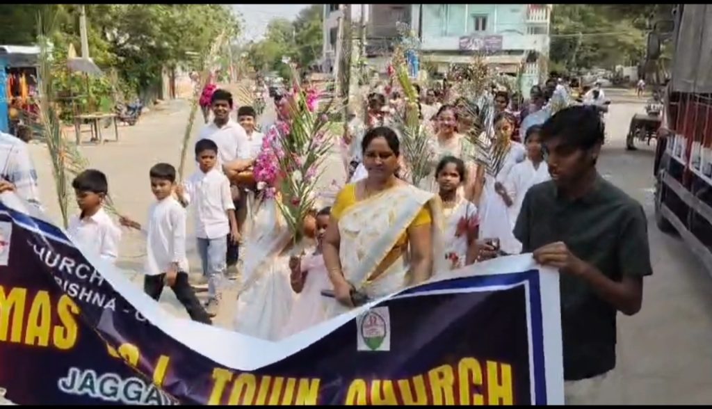 పయనించే సూర్యుడు రిపోర్టర్ జగయ్యపేట నియోజకవర్గం ఇన్చార్జి చేని రాంబాబు ఎన్టీఆర్ జిల్లా జగయ్యపేట్ట నియోజకవర్గం మార్చి 30 జగయ్యపేట్ట పట్టణంలోని ఈరోజు న పెద్ద ఎత్తున ఏసుక్రీస్తు సంకీర్తనలు పాడుకుంటూ ఈరోజున ప్రధాన రహదారి మట్టల పండుగ సందర్భంగా మట్టల ఆదివారం వేడుకలు భక్తి శ్రద్ధలతో ఘనంగా నిర్వహించారు. సిఎస్ఐ చర్చ్ ఆధ్వర్యంలో సంఘ పెద్దలు, సంఘ విశ్వాసులు సండే స్కూల్ పిల్లలు కలిసి పట్టణ పురవీధుల్లో పూలతో అలంకరించిన మట్టలు పట్టుకొని ర్యాలీ నిర్వహించారు. ఈ సందర్భంగా క్రీస్తు భక్తి గీతాలు ఆలపిస్తూ, క్రైస్తవులు అత్యంత పవిత్రంగా భావించే పామ్ సండే, ఈస్టర్ పండుగకు వారం రోజుల ముందు జరుపుకుంటారు. శ్రమలకాలం (లెంట్ డేస్)లో వచ్చే ఈ రోజు, యేసుక్రీస్తు యెరూషలేములో ప్రవేశించిన సందర్భాన్ని గుర్తుచేస్తూ భక్తి భావంతో జరుపుకుంటారు. ఈ కార్యక్రమంలో సంఘ పాస్టర్లు పాస్టర్ అమ్మలు సంఘ పెద్దలు సంఘవిశ్వాసులు సంఘం నాయకులు సంఘ యవనస్తులు మహిళలు పెద్ద ఎత్తున పాల్గొన్నారు