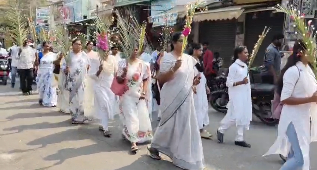పయనించే సూర్యుడు రిపోర్టర్ జగయ్యపేట నియోజకవర్గం ఇన్చార్జి చేని రాంబాబు ఎన్టీఆర్ జిల్లా జగయ్యపేట్ట నియోజకవర్గం మార్చి 30 జగయ్యపేట్ట పట్టణంలోని ఈరోజు న పెద్ద ఎత్తున ఏసుక్రీస్తు సంకీర్తనలు పాడుకుంటూ ఈరోజున ప్రధాన రహదారి మట్టల పండుగ సందర్భంగా మట్టల ఆదివారం వేడుకలు భక్తి శ్రద్ధలతో ఘనంగా నిర్వహించారు. సిఎస్ఐ చర్చ్ ఆధ్వర్యంలో సంఘ పెద్దలు, సంఘ విశ్వాసులు సండే స్కూల్ పిల్లలు కలిసి పట్టణ పురవీధుల్లో పూలతో అలంకరించిన మట్టలు పట్టుకొని ర్యాలీ నిర్వహించారు. ఈ సందర్భంగా క్రీస్తు భక్తి గీతాలు ఆలపిస్తూ, క్రైస్తవులు అత్యంత పవిత్రంగా భావించే పామ్ సండే, ఈస్టర్ పండుగకు వారం రోజుల ముందు జరుపుకుంటారు. శ్రమలకాలం (లెంట్ డేస్)లో వచ్చే ఈ రోజు, యేసుక్రీస్తు యెరూషలేములో ప్రవేశించిన సందర్భాన్ని గుర్తుచేస్తూ భక్తి భావంతో జరుపుకుంటారు. ఈ కార్యక్రమంలో సంఘ పాస్టర్లు పాస్టర్ అమ్మలు సంఘ పెద్దలు సంఘవిశ్వాసులు సంఘం నాయకులు సంఘ యవనస్తులు మహిళలు పెద్ద ఎత్తున పాల్గొన్నారు