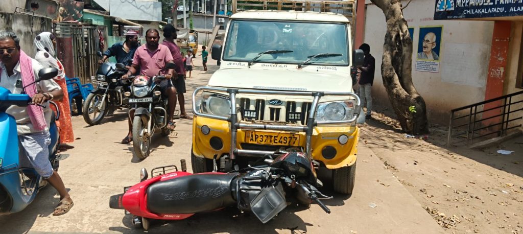 నిలిపి ఉంచిన బైక్‌ను ఢీకొట్టిన వాహనం – లైసెన్స్ లేని యువకుల నిర్లక్ష్యం