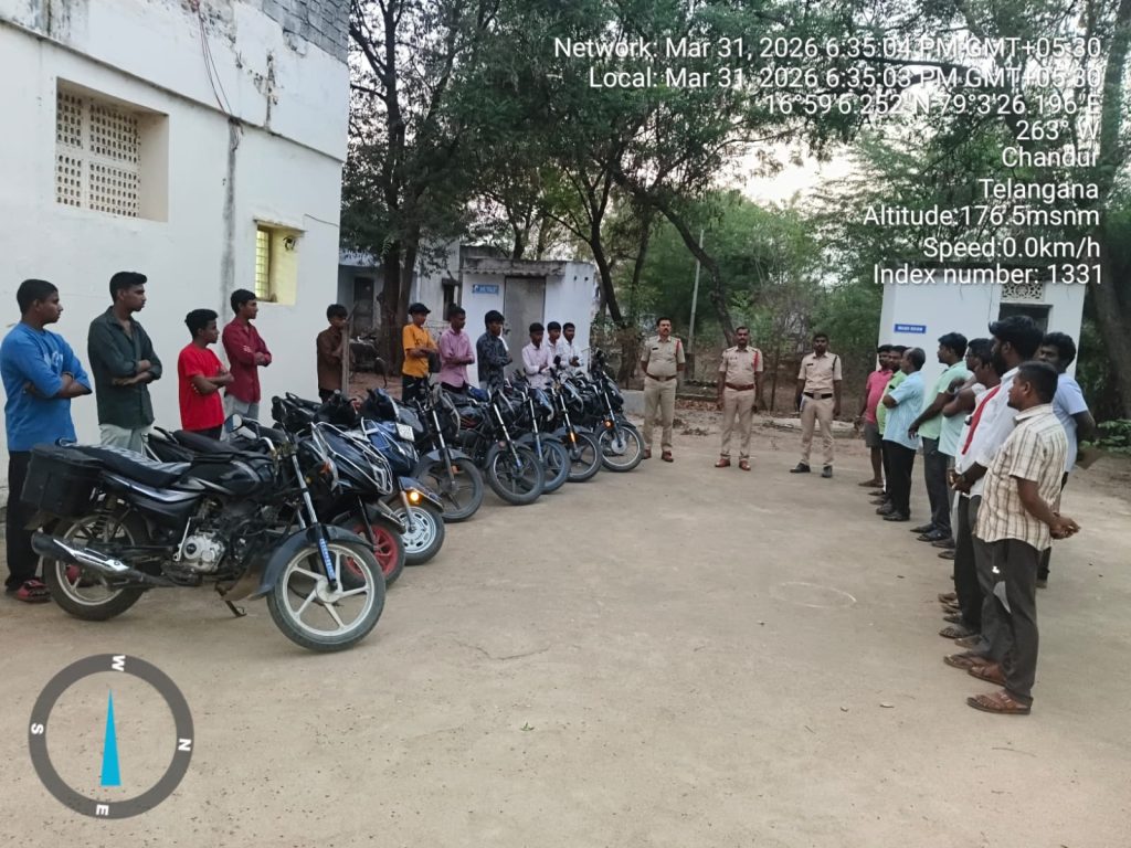 పయనించే సూర్యుడు న్యూస్ చండూరు ఏప్రిల్ 01. చండూరు మున్సిపల్ పట్టాన జేంద్రంలో నల్గొండ జిల్లా ఎస్పీ గారి ఉత్తర్ల ప్రకారంగా మంగళవారం రోజున చండూరు టౌన్ లోని స్పెషల్ డ్రైవ్ లో భాగంగా (09) మంది మైనర్లు వాహనాలు నడుపుతుండగా వారిని పట్టుబడి చేసి వారి పైన కేసు నమోదు చేసి, వారి తల్లిదండ్రులను పిలిపించి కౌన్సిలింగ్ చేసినారు. మైనర్లు వాహనాలు నడుపుతూ పట్టుబడితే, పోలీసులు కఠిన చర్యలు తీసుకుంటారు. వాహనాన్ని సీజ్ చేసి, తల్లిదండ్రులపై కేసులు నమోదు చేస్తారు. పిల్లలకు కౌన్సెలింగ్ ఇచ్చి, జరిమానాలు విధించడంతో పాటు, 25 ఏళ్ల వయస్సు వచ్చే వరకు డ్రైవింగ్ లైసెన్స్ పొందకుండా అనర్హత వేటు వేసే అవకాశం ఉంది వాహన యజమానులు మైనర్ పిల్లలకు వాహనాలు నడిపేందుకు ఇవ్వొద్దని, ప్రమాదాలు జరిగే అవకాశాలు ఎక్కువగా ఉంటాయని, ప్రమాదం జరిగితే వాహన యజమాని చట్ట ప్రకారం చర్యలు తీసుకుంటామన్నారు. అలాగే లైసెన్స్ లేకుండా డ్రైవింగ్ చేయడం, నంబర్ ప్లేట్ లేని వాహనాలు నడపడం, తప్పుడు నంబర్లు ఏర్పాటు చేయడం, ప్రజలకు ఇబ్బంది కలిగించేలా శబ్ద కాలుష్యాన్ని సృష్టించే విధంగా ద్విచక్ర వాహనాల సైలెన్సర్ లను కలిగి ఉన్న వాహనదారుల పై కఠిన చర్యలు ఉంటాయన్నారు. నిబంధనలకు లోబడి నెంబర్ ప్లేట్ ఏర్పాటు చేయాలి, లేకపోతే వాహనదారుల చీటింగ్ కేసులు నమోదు చేస్తామన్నారు. అలాగే ట్రాఫిక్ నిబంధనలను పాటించాలని సూచించారు. ఎవరైనా మైనర్లకు వాహనాలు ఇస్తే వారిపై కఠిన చర్యలు ఉంటాయి అని , అలాగే ప్రతి ఒక్కరు హెల్మెట్ దరించి ట్రాఫిక్ రూల్స్ పాటించాలి అని కె. అది రెడ్డి, సి.ఐ, చండూర్ తెలిపారు, ఈ కార్యక్రమంలో యస్ ఐ చండూరు మరియు వారి సిబ్బంది పాల్గొన్నారు.