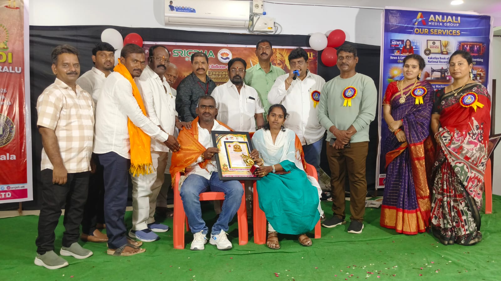పయనించే సూర్యుడు ఏప్రిల్ 01 వరంగల్ జిల్లా నర్సంపేట నియోజకవర్గం ఖానాపురం మండల కేంద్రం అంజలి మీడియా గ్రూప్ అందరి టీవీ వరంగల్ జిల్లా ఆధ్వర్యంలో సమిష్టిగా నిర్వహించిన ఉగాది పురస్కారాలు 2026 కు సంబంధించి రాణి రుద్రమ దేవి అవార్డును మనుబోతుల గడ్డ గ్రామపంచాయతీ సర్పంచ్ ఆబోతు శ్రీలత-అశోక్ కు హనుమకొండలోని ప్రెస్ క్లబ్ లో శాలువాతో సత్కరించి రాణి రుద్రమ దేవి అవార్డును సర్పంచ్ కు యాజమాన్యం అందించారు ఈ సందర్భంగా సర్పంచ్ శ్రీలత అశోక్ మాట్లాడుతూ అనతి కాలంలోనే నన్ను గుర్తించి ఈ గొప్ప అవార్డును అందించడం గర్వంగా ఉందని మీరు అందించిన స్ఫూర్తితో గ్రామంలో మరిన్ని అభివృద్ధి కార్యక్రమాలకు అందరి ఐక్యత సహకారంతో ముందుకు వెళ్లి ఉత్తమ గ్రామంగా తీర్చిదిద్దుతానని అన్నారు