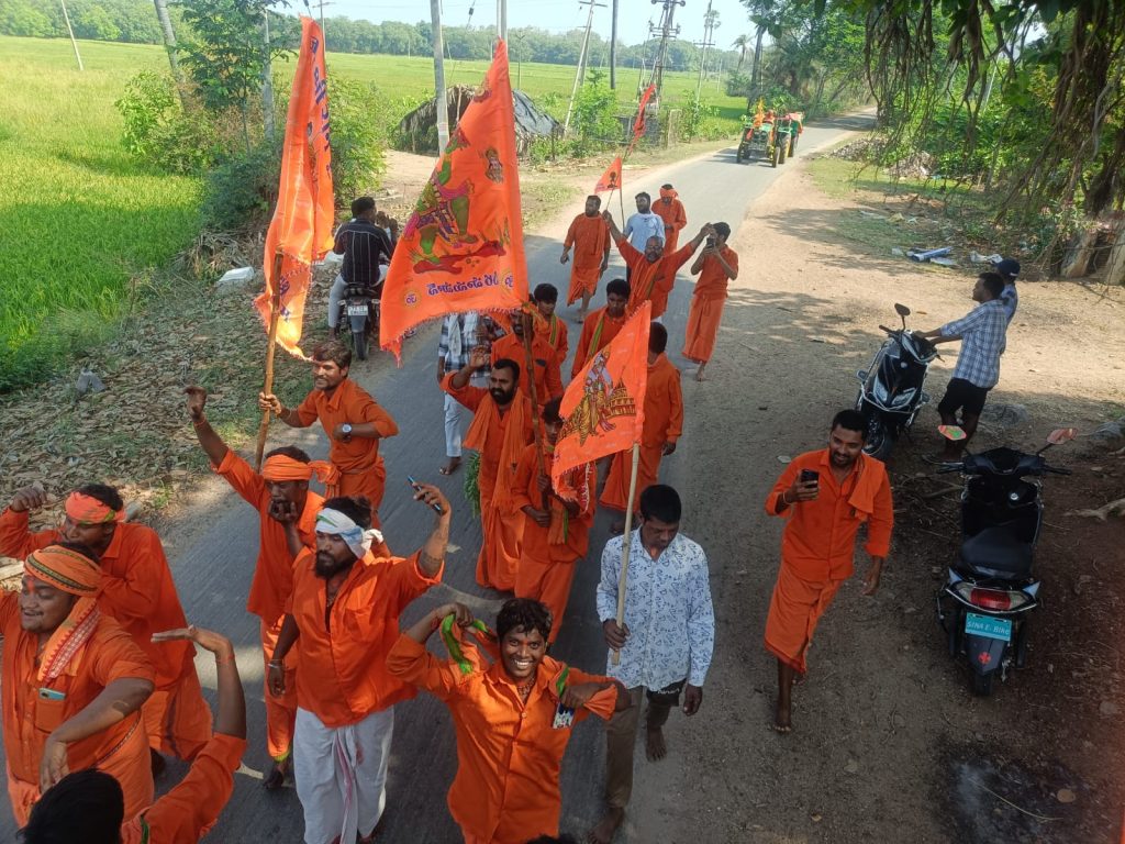 పయనించే సూర్యుడు న్యూస్ రాయికల్ మండల్ ఏప్రిల్ 02 మామిడిపెల్లి లక్ష్మణ్ రాయికల్ మండలం దావన్ పెల్లి గ్రామానికి చెందిన 25మంది ఆంజనేయ స్వామి మాలధారణ స్వామి లు చిన్న పెద్ద ఏప్రిల్ 2 గురువారం నాడు జగిత్యాల జిల్లాలోని ప్రముఖ పుణ్యక్షేత్రమైన కొండగట్టు ఆంజనేయస్వామి ఆలయం వరకు మహా పాదయాత్ర చేస్తున్నారు. డిజె భజన పాటలతో, కీర్తనలతో, దైవ నామస్మరణ చేస్తూ పాదయాత్ర గా సాగుతున్నారు. ఈ పాదయాత్రలో మాలావత్ వెంకటేష్ ,రేణు సంజయ్ కుమార్, లక్మణ్ భక్తులు తదితరులు పాల్గొన్నారు