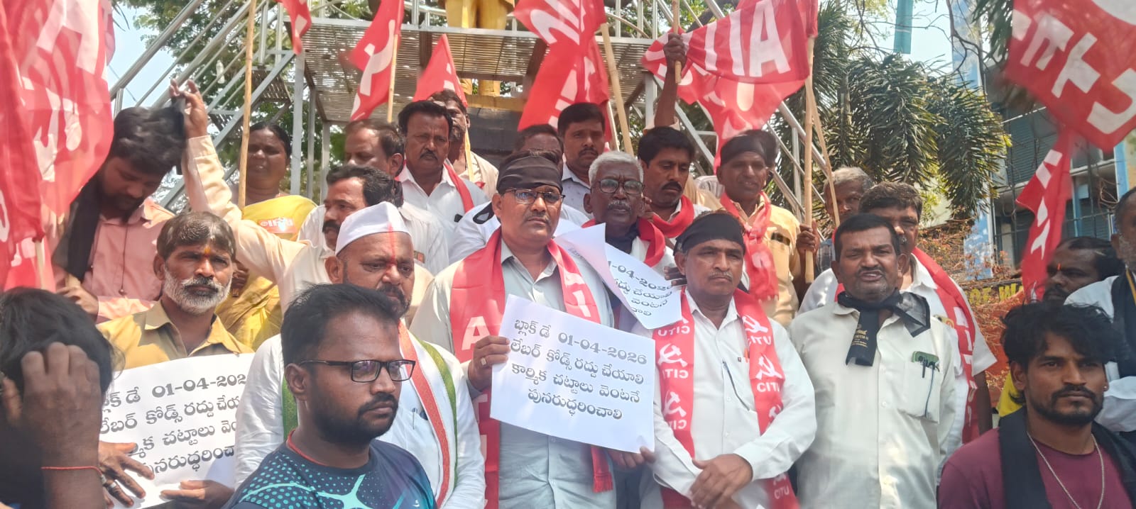 పయనించే సూర్యుడు ఏప్రిల్ 2 ఆదోని నియోజకవర్గం ప్రతినిధి బాలకృష్ణ. కేంద్ర ప్రభుత్వం నేటి నుంచి అమలు చేయనున్న నాలుగు లేబర్ కోడ్లను నిరసిస్తూ ఈరోజు ఆదోని కార్మిక సంఘాల ఆధ్వర్యంలో అంబేద్కర్ విగ్రహం ముందు నిరసన కార్యక్రమం చేపట్టడం జరిగింది! ఈ కార్యక్రమంలో ఏఐటీయూసీ జిల్లా అధ్యక్షులు ఎన్ కృష్ణయ్య మాట్లాడుతూ…కేంద్ర ప్రభుత్వం నవంబర్ 21వ తేదీ నుండి నాలుగు లేబర్ కోడ్స్ అమలు చేయాలని కేంద్ర కార్మిక ఉపాధి కల్పన శాఖ ప్రకటించడం జరిగిందని, బ్రిటిష్ నాటి కాలంలో పోరాడి సాధించుకున్న అనేక కార్మిక చట్టాలను తుంగలో తోక్కిందని వారు అన్నారు.వేతనాలకోడు, పారిశ్రామిక సంబంధాల కోడు, సామాజిక భద్రత కోడు,,వృత్తి భద్రత, ఈ నాలుగు లేబర్ కోడ్ లుగా కార్మికులకు పరివర్తనాత్మక మార్పును తెలియజేస్తాయని కార్మికులకు మెరుగైన వేతనాలు పని భద్రత సామాజిక భద్రత సంక్షేమం కార్మిక భవిష్యత్తుకు రక్షిత సంకేతాలని నరేంద్ర మోడీతో పాటు రాష్ట్రంలో కూటమి నేతలు ప్రగల్బాలు పలుకుతున్నారని ఇది భారతదేశ కార్మిక వర్గ కార్మికుల శ్రేయస్సును పక్కాగా కార్పొరేట్ పెట్టుబడి దారులకు దాషోహం చేస్తున్న అనుకూలమైన విధానాలని, కార్మికుల శ్రమను దోచుకునేందుకే ప్రవేశపెట్టారన్నారు. ఇవి దోపిడీ చట్టాలని అన్ని కార్మిక సంఘాలు ఒకవైపు వ్యతిరేకిస్తున్నా వీరికి కనపడడం లేదన్నారు. పాలకులకు ఆలోచన అంతా కార్పొరేట్లకు ఎలా మేలు చేయాలనే ఆలోచన తప్ప కార్మిక వర్గానికి న్యాయం చేసే పరిస్థితి లేదన్నారు.. రాష్ట్రంలో చంద్రబాబు నాయుడు ప్రభుత్వం ఎనిమిది గంటల పనిని 10 గంటలకు పెంచుతూ అసెంబ్లీలో తీర్మానం చేయడం సిగ్గుచేటు అయిన విషయం అన్నారు.ఇలాంటి చర్యలు లేబర్ కోడ్స్ లో భాగమేనని వారన్నారు.. స్వదేశీ విదేశీ బడా కార్పొరేట్ కంపెనీలకు అనుకూలంగా కేంద్ర ప్రభుత్వం అమలోకి తెచ్చిన లేబర్ కోడ్స్ ను వ్యతిరేకిస్తూ కార్మిక రైతు ప్రజా సంఘాలు కదంతో తొక్కాలన్నారు.. సమ్మె చేసే హక్కుతో పాటు ఈఎస్ఐ-పిఎఫ్ రక్షణ చట్టాలు,పనికి తగిన వేతనం అడిగే అవకాశం కూడా వీటి ద్వారా కార్మికుల కోల్పోతారని ఆందోళన వ్యక్తం చేశారు. ఇలాంటి పరిస్థితుల్లో కార్మిక హక్కుల రక్షణకై భవిష్యత్తు ఉద్యమ కార్యాచరణ తెలియజేస్తామన్నారు.. ఈ సమావేశానికి ఏఐటీయూ పట్టణ అధ్యక్ష కార్యదర్శులు ఓబి నాగరాజ్ వైటి భీమేష్ అజయ్ బాబు సిపిఐ పార్టీ కార్యవర్గ సభ్యులు సుదర్శన్ మరియు ఉపాధ్యక్షులు గిరి మల్లప్ప ఏఐటీయూసీ జిల్లా సమితి సభ్యులు కల్లుబావిరాజు వడ్డే రాముడు లక్ష్మీనారాయణ దేవా నాగరాజు నర్సింలు తదితరులు పాల్గొన్నారు.