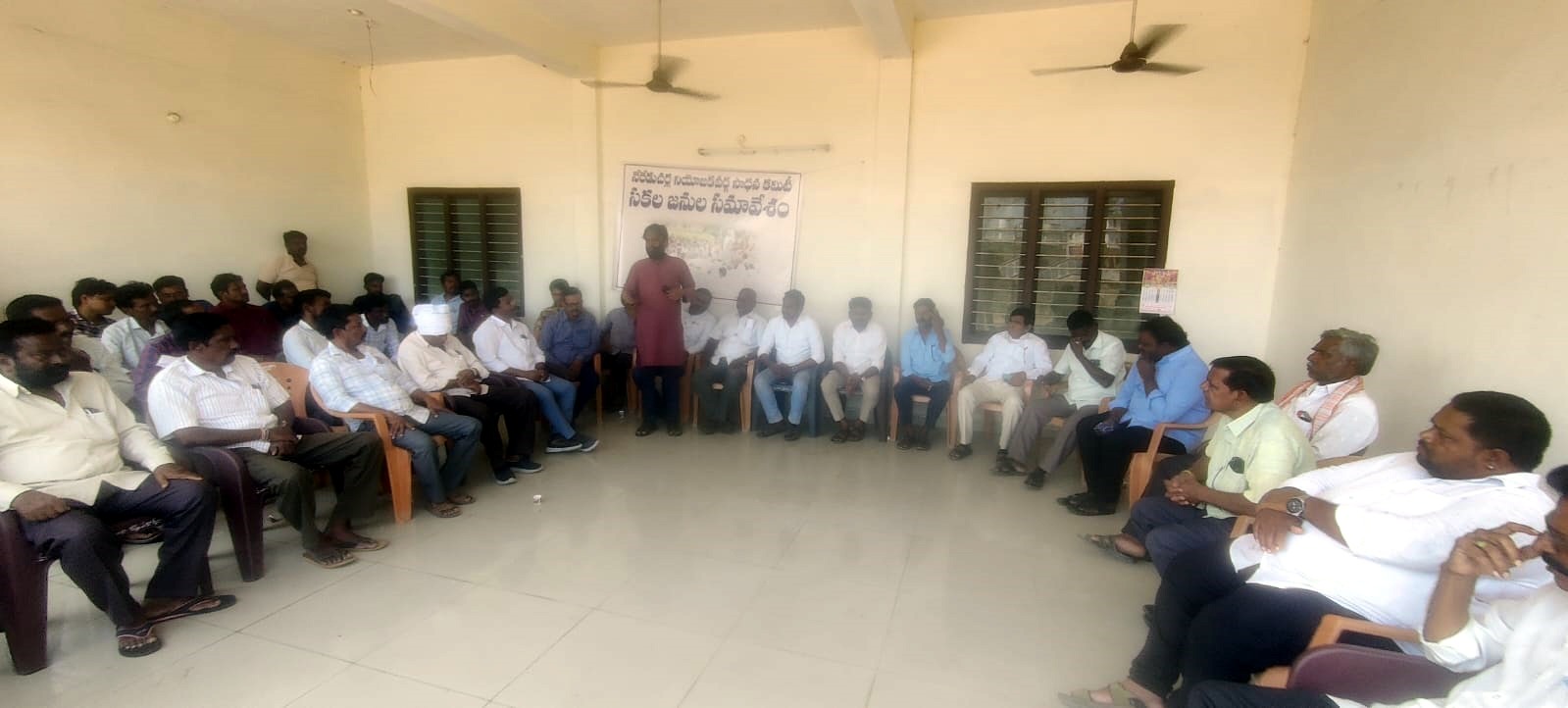 పయనించే సూర్యుడు ఏప్రిల్ 02 నేరెడుచెర్ల మండల ప్రతినిధి (చింతల శ్రవణ్ ) కేంద్ర ప్రభుత్వం త్వరలో చేపట్టనున్న నియోజకవర్గాల పునర్విభజన లో నేరేడుచర్లను నియోజకవర్గ కేంద్రంగా ఏర్పాటు చేయాలని అందుకొరకు నేడేడుచర్ల విశ్వబ్రాహ్మణ సంఘం కార్యాలయంలో జరిగిన సకల జనుల సమావేశంలో వివిధ పార్టీల, ప్రజాసంఘాల నాయకులు మాట్లాడుతూ నేరేడుచర్ల నియోజకవర్గం అయేంతవరకు మడమ తిప్పని పోరాటం చేద్దామని అందుకు నేరేడుచర్ల గరిడేపల్లి పాలకవీడు పెన్ పహాడ్ లోని అన్ని గ్రామాల్లోని యువకులను సమీకరించి ఉద్యమ బాట పట్టించాలని నిర్ణయించారు. నేరేడుచర్లలు నియోజకవర్గంగా ఏర్పాటు చేయడానికి అన్ని అర్హతలు ఉన్నాయని నేషనల్ హైవే మీద ఉండటం మూసి నది మరియు కష్టా నది పరివాహక ప్రాంతం కావడం జాన్ పహాడ్ లాంటి చారిత్రక దర్గా ఇక్కడే ఉండడం విద్యాసంస్థలు అలాగే త్వరలో రైలు సౌకర్యం ఏర్పడే అవకాశం ఉన్నదని ఇప్పటికే జాన్ పహాడ్ కు గూడ్స్ రైలు సౌకర్యం ఉన్నదని, నియోజకవర్గంగా ఏర్పడితే మహంకాళి గూడెంపై హై లెవెల్ బ్రిడ్జి పొందవచ్చని, పోలీస్ సర్కిల్ కార్యాలయం ఏర్పడుతుందని అనేక ప్రభుత్వ కార్యాలయాలు ఐటిఐ కాలేజీలు, లాంటివి నియోజకవర్గానికి వచ్చే అవకాశం ఉన్నదని నియోజకవర్గ అభివృద్ధి నిధులు కూడా రావడం ద్వారా అన్ని గ్రామాలకు మెరుగైన సౌకర్యాలు అన్ని గ్రామాలకు బస్సు సౌకర్యం కల్పించడం కాకపోతే మరో 30 సంవత్సరాల వరకు అయ్యే అవకాశం ఉండదని అందువల్ల ఈ ప్రాంత ప్రజలు పాలకులను ఒప్పించి అధికారులను ఒప్పించి నియోజకవర్గ సాధించేందుకు కృషి చేయాలని అందుకు స్థానిక మంత్రి ఉత్తంకుమార్ రెడ్డి అండదండలు కావాలని కేంద్రంలో అధికారంలో ఉన్న బిజెపితో పాటు రాష్ట్రంలో అధికారంలో ఉన్న కాంగ్రెస్ పార్టీ ఈ రెండు పార్టీలు కూడా ప్రజల అభిప్రాయాన్ని స్వీకరించి గౌరవించి అవకాశo కల్పించాలని వారి కోరారు సమావేశానికి సామాజిక కార్యకర్త ధూళిపాళ ధనుంజయ నాయుడు అధ్యక్షత వహించగా…. మాజీ ఎంపీపీ చెన్నబోయిన సైదులు, సరికొప్పుల నాగేశ్వరరావు ఎస్.కె ఖలీల్ రాపోలు నవీన్ ఆకారపు వెంకటేశ్వర్లు, కొదమగుండ్ల నగేష్, బాల వెంకటేశ్వర్లు, నరి నాయక్, బొడ్డుపల్లి సుందరయ్య, వాస పల్లయ్య, ఎస్.కె ఇబ్రహీం, పెరుమాళ్ళ సతీష్, ఇంజమూరి వెంకటయ్య, జింకల భాస్కర్, రాజేష్ రెడ్డి కొనతం నాగిరెడ్డి, ఎడవల్లి అరుణ్ కుమార్, కత్తి శ్రీనివాసరెడ్డి, రావుల సత్యం, ముళ్ల జానయ్య, తక్కెళ్ళ నాగార్జున, కొమర్రాజు వెంకట్, బత్తిని శ్రీనివాస్ గౌడ్, ఏ లక్ష్మి. నక్క రమాదేవి, అంబటి నాగేశ్వరరావు తదితరులు పాల్గొన్నారు