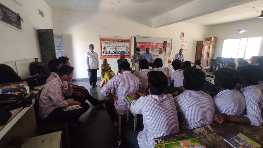 పయనించే సూర్యుడు 3.4.2026 చోడవరం అనకాపల్లి జిల్లా రిపోర్టర్ :శ్రవణ్ రాజ్ స్థానిక ప్రభుత్వ డిగ్రీ కళాశాలలో జాతీయ సేవా పథకము ఒకటి రెండు మూడు వారి ఆధ్వర్యంలో “అవయవ దాన అవగాహనా సదస్సు” 02.04.2026 రోజున కళాశాల ప్రిన్సిపాల్ డాక్టర్ పి కిరణ్ కుమార్ ప్రారంభించారు. ఈ కార్యక్రమాన్ని ఉద్దేశించి సావిత్రిబాయి పూలే చారిటబుల్ ట్రస్ట్ నిర్వాహకులు డాక్టర్ సీతామహాలక్ష్మి అన్నారు మాట్లాడుతూ ప్రపంచంలో అన్నదానం కన్నా నేత్రదానం, శరీర అవయవ దానం చేయడం వల్ల ఎనిమిది మంది ప్రాణాలు రక్షించిన వాళ్ళు అవుతారని యువత ఈ విషయంలో మంచి అవగాహన కలిగి ముందుండాలని ఉద్బోధించారు. ప్రతి విద్యార్థి జీవన ధాన్ వెబ్ పోర్టల్ లోకి వెళ్లి రిజిస్టర్ అయ్యి ప్రతిజ్ఞ తీసుకొని ఐడెంటి ని పొందవలసిందిగా విజ్ఞప్తి చేశారు. బ్రహ్మకుమారిస్ విశాఖపట్నం కుమారి మాట్లాడుతూ ప్రతి విద్యార్థి విద్యతో పాటు మోరల్ వాల్యూస్, సమాజానికి మనం చేసే మేలే గుర్తుండిపోతుందని తెలియజేశారు. జోషి మాట్లాడుతూ సమాజానికి విద్యార్థులుగా మీరు అవయవ దానం చేసి మెడికల్ కళాశాల విద్యార్థులకు ప్రాక్టికల్ గా ఉపయోగపడాలని సూచించారు. కార్యక్రమ అనంతరం వెటర్నర్ అథ్లెట్ ముత్యం లక్ష్మీ నీ సన్మానించారు. విశ్వనాథ టైపింగ్ ఇన్స్టిట్యూట్ ప్రిన్సిపాల్ శ్రీ బాబ్జి, ఆల్ముని అసోసియేషన్ కార్యదర్శి గుప్త మరియు పద్మిని కార్యక్రమంలో పాల్గొన్నారు. ఆంగ్ల అధ్యాపకులు హెచ్వో డి డాక్టర్ మల్లి బాబు అవయవ దానం ప్రాముఖ్యతను వివరించారు. వైస్ ప్రిన్సిపాల్ ఐ వి వి సత్యవతి, ఐ క్యూ ఏ సి సమన్వయకర్త డాక్టర్ నారాయణ మూర్తి, జాతీయ సేవా పథకం ప్రోగ్రామ్ ఆఫీసర్స్ డాక్టర్ రత్న భారతి, డి.మాల్యాద్రి, బి.పిచ్చమ్మ, సీనియర్ అధ్యాపకులు హెచ్ సుదీర్, డాక్టర్ కృష్ణారావు, డాక్టర్ రాధాకృష్ణ, డాక్టర్ జ్యోతి,