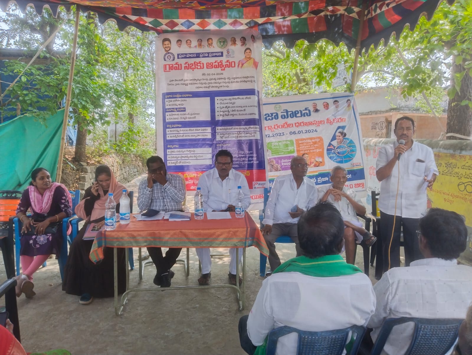 పయనించే సూర్యుడు న్యూస్ :ఏప్రిల్ 3,తల్లాడ రిపోర్టర్ తల్లాడ మండలం కొత్త వెంకటగిరి గ్రామపంచాయతీలో ఈరోజు ఉదయం 10 గంటలకు తెలంగాణ ప్రభుత్వం ప్రవేశపెట్టిన 99 రోజుల ప్రజా పాలన ప్రగతి ప్రణాళిక లో భాగంగా గ్రామ సభ నిర్వహించడం జరిగింది మొదటగా ఈ కార్యక్రమంలో తెలంగాణ రాష్ట్ర గేయం జయహో జై తెలంగాణ తో ప్రారంభమై తర్వాత తెలంగాణ ముఖ్యమంత్రి వర్యుల సందేశాన్ని చదివి వినిపించడం జరిగింది అనంతరం కాంగ్రెస్ ప్రభుత్వం చేపట్టిన అనేక బహుళ సంక్షేమ పథకాలను జరుగుతున్న అభివృద్ధి గురించి గ్రామసభలో తెలియజేయడం జరిగింది గ్రామ సభలో ప్రజా సమస్యలపై ప్రత్యేక బాక్స్ ను ఏర్పాటు చేయడం జరిగింది అర్హులైనటువంటి ప్రతి ఒక్కరికి సంక్షేమ పథకాలు అందించాలని అర్హుల జాబితాను ఎటువంటి పక్షపాతం లేకుండా ఎంపిక చేయాలని ప్రగతి పథంలో గ్రామపంచాయతీ అభివృద్ధి గురించి చర్చించడం జరిగింది రాష్ట్ర ప్రభుత్వం అందిస్తున్న నిధులను పంచాయితీలు అవసరాల నిమిత్తం వినియోగించుకోవాలని దుర్వినియోగానికి గ్రామపంచాయతీలు నిదర్శనంగా ఉండకూడదు అని ప్రతి ఒక్కరూ నియమ నిబంధనలకు విరుద్ధంగా నడుచుకోవద్దని తెలియజేశారు ఈ కార్యక్రమంలో స్పెషలాఫీసర్ గా తల్లాడ ఏపీఎం రవికుమార్. సర్పంచ్ దీవెల వెంకటేశ్వరరావు, ఉప సర్పంచ్ రుద్రాక్ష వెంకటాచారి, గ్రామ కార్యదర్శి ఎస్కె మీరా, గ్రామ పెద్దలు దిరిశాల వెంకట నరసయ్య, దిరిశాల వెంకట్రామయ్య, మరియు వార్డు మెంబర్లు గ్రామ సభ్యులు పెద్ద సంఖ్యలో పాల్గొన్నారు కార్యక్రమాన్ని ఇంత విజయవంతం చేసినటువంటి ప్రతి ఒక్కళ్ళకు సర్పంచ్ దీవెల వెంకటేశ్వర్రావు హృదయపూర్వక కృతజ్ఞతలు తెలియజేశారు.