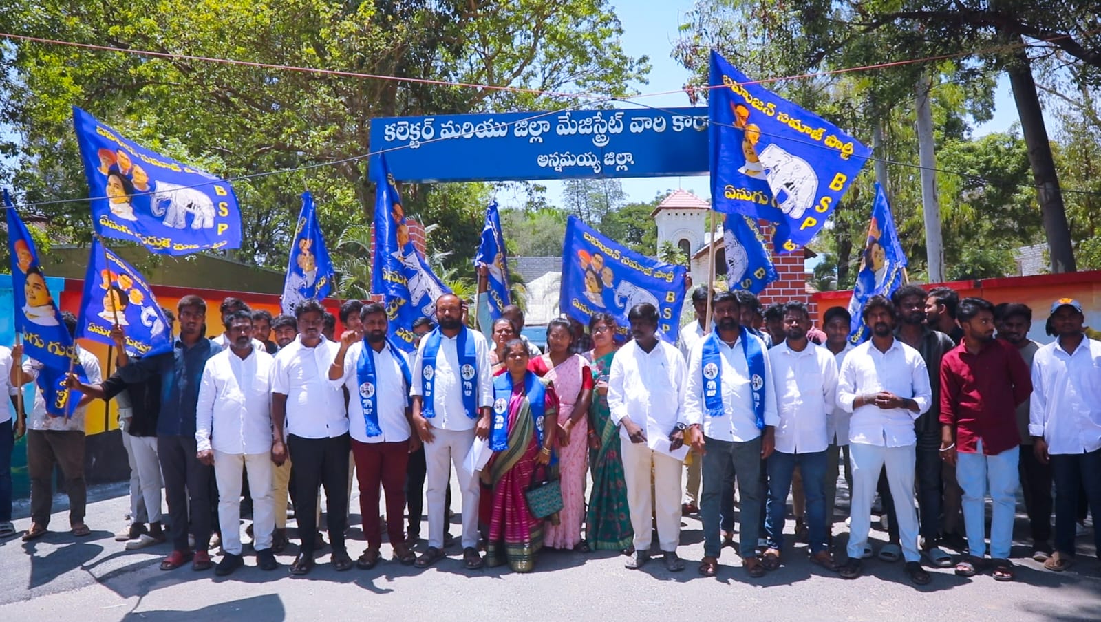 పయనించే సూర్యుడు మేజర్ న్యూస్ ఏప్రిల్ 03.04.2026 మదనపల్లె అన్నమయ్య జిల్లా పుంగనూరు నియోజకవర్గ O ప్రతినిధి జె. నాగరాజ) మదనపల్లి: బహుజన్ సమాజ్ పార్టీ ఆంధ్రప్రదేశ్ రాష్ట్ర అధ్యక్షులు బిందెల గౌతం కుమార్ ఆదేశాల మేరకు,ఈరోజు అన్నమయ్య జిల్లా బహుజన్ సమాజ్ పార్టీ ఆధ్వర్యంలో జిల్లా కలెక్టర్ కార్యాలయం వద్ద భారీ నిరసన కార్యక్రమం నిర్వహించడం జరిగింది. ఈ సందర్భంగా బిఎస్పి జిల్లా అధ్యక్షులు మాట్లాడుతూ, కేంద్ర మరియు రాష్ట్ర ప్రభుత్వాలు దళితుల పట్ల అవలంబిస్తున్న వ్యతిరేక విధానాలను తీవ్రంగా ఖండించారు. ఈ సందర్భంగా వారు లేవనెత్తిన ప్రధాన డిమాండ్లు: దళిత క్రైస్తవుల రిజర్వేషన్లు: సుప్రీంకోర్టు సూచనల మేరకు, మతం మారినప్పటికీ దళితులు ఎదుర్కొంటున్న సామాజిక వివక్షను పరిగణనలోకి తీసుకొని దళిత క్రైస్తవులకు వెంటనే ఎస్సీ హోదా కల్పించాలి. గతంలో సిక్కు, బౌద్ధ మతాల్లోకి మారిన దళితులకు ఏ విధంగా రిజర్వేషన్లు వర్తిస్తున్నాయో, అదే రీతిలో దళిత క్రైస్తవులకు కూడా న్యాయం చేయాలని కేంద్రాన్ని డిమాండ్ చేశారు. రాష్ట్రవ్యాప్తంగా మా పార్టీ ఈ కార్యక్రమంలో, యుగంధర్ అబ్బవరం, గూడుపల్లి శివ, మల్లికార్జున, సోమశేఖర్, సంధ్యారాణి, కన్నయ్య, గూడుపల్లి అరుణ్, శ్రీనాథ్, దంపట్ల శివకుమార్, చంద్ర, అబ్బవరం నాగేశ్వరావు, తదితరులు పాల్గొన్నారు..