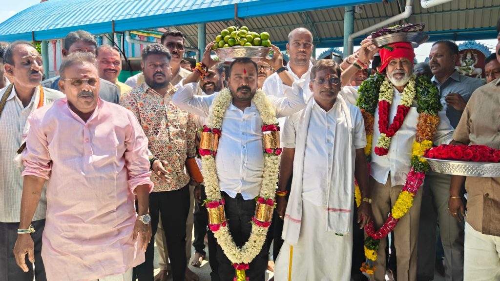 పయనించేసూర్యుడు మేజర్ న్యూస్ ఏప్రిల్ 04.04.2028 మదనపల్లి అన్నమయ్య జిల్లా పుంగనూరు నియోజకవర్గం చౌడేపల్లి మండల ప్రతినిధి జె. నాగరాజ) శక్తి క్షేత్రం బోయకొండ గంగమ్మ ఆలయంలో అమ్మవారిని ఇద్దరు ఎమ్మెల్యేలు దర్శించుకున్నారు శుక్రవారం రాహుకాల అభిషేకం అనంతరం పూతలపట్టు ఎమ్మెల్యే కలికిరి మురళీమోహన్ çచంద్రగిరి ఎమ్మెల్యే పులివర్తి నానిలు అమ్మవారిని దర్శించుకున్నారు తొలత ఉప కమిషనర్ ఈవో ఏకాంబరం వారిని ఆలయ మర్యాదలతో సాదరంగా ఆహ్వానించి అమ్మవారి దర్శన భాగ్యం కల్పించారు మండపంలో వేద ఆశీర్వాదం అనంతరం కుంకుమార్చన లో పాల్గొన్నారు అమ్మవారి మెమొంటో పాటు తీర్థప్రసాదాలు అందించి సత్కరించారు ఈ కార్యక్రమంలో తెలుగుదేశం పార్టీ నాయకులు బోయకొండ సుబ్బు సోము రెడ్డి సింగిల్ విండో చైర్మన్ హరి రాయల్ కార్తీక్ విద్యాసాగర్ సోమల ఏఎంసీ చైర్మన్ శ్రీనివాసులు నాయుడు నాయకులు బిజెపి తెలుగుదేశం జనసేన నాయకులు పాల్గొన్నారు