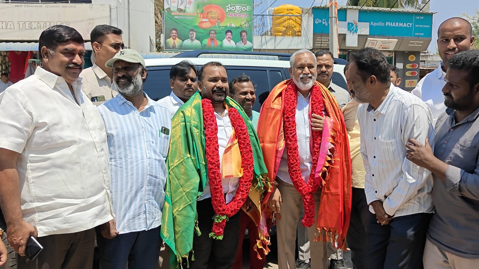 పయనించేసూర్యుడు మేజర్ న్యూస్ ఏప్రిల్ 04.04.2028 మదనపల్లి అన్నమయ్య జిల్లా పుంగనూరు నియోజకవర్గం చౌడేపల్లి మండల ప్రతినిధి జె. నాగరాజ) శక్తి క్షేత్రం బోయకొండ గంగమ్మ ఆలయంలో అమ్మవారిని ఇద్దరు ఎమ్మెల్యేలు దర్శించుకున్నారు శుక్రవారం రాహుకాల అభిషేకం అనంతరం పూతలపట్టు ఎమ్మెల్యే కలికిరి మురళీమోహన్ çచంద్రగిరి ఎమ్మెల్యే పులివర్తి నానిలు అమ్మవారిని దర్శించుకున్నారు తొలత ఉప కమిషనర్ ఈవో ఏకాంబరం వారిని ఆలయ మర్యాదలతో సాదరంగా ఆహ్వానించి అమ్మవారి దర్శన భాగ్యం కల్పించారు మండపంలో వేద ఆశీర్వాదం అనంతరం కుంకుమార్చన లో పాల్గొన్నారు అమ్మవారి మెమొంటో పాటు తీర్థప్రసాదాలు అందించి సత్కరించారు ఈ కార్యక్రమంలో తెలుగుదేశం పార్టీ నాయకులు బోయకొండ సుబ్బు సోము రెడ్డి సింగిల్ విండో చైర్మన్ హరి రాయల్ కార్తీక్ విద్యాసాగర్ సోమల ఏఎంసీ చైర్మన్ శ్రీనివాసులు నాయుడు నాయకులు బిజెపి తెలుగుదేశం జనసేన నాయకులు పాల్గొన్నారు