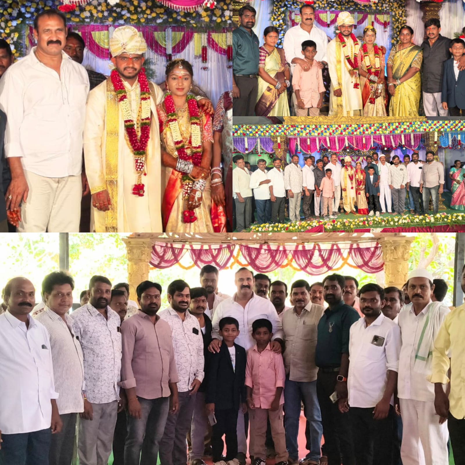 పయనించే సూర్యడు ఏప్రిల్ 04 సూర్యాపేట జిల్లా నడిగూడెం ప్రతినిధి పొలంపల్లి వెంకటేశ్వర్లు నడిగూడెం మండల కేంద్రంలోని కొల్లు కోటయ్య ఫంక్షన్ హాల్లో జరిగిన వివాహ వేడుకకు కోదాడ మాజీ ఎమ్మెల్యే బొల్లం మల్లయ్య యాదవ్ ముఖ్య అతిథిగా హాజరయ్యారు. నడిగూడెం గ్రామానికి చెందిన నక్క గోవిందు-స్వరూప దంపతుల కుమారుడు సందీప్, వధువు విన్యశ్రీల వివాహ వేడుక శుక్రవారం ఘనంగా నిర్వహించారు. ఈ సందర్భంగా కళ్యాణ వేదికపై వధూవరులను కలిసిన మల్లయ్య యాదవ్ , వారికి పూలమాలలు వేసి శుభాకాంక్షలు తెలియజేశారు. నూతన వధూవరులు నిండు నూరేళ్లూ సుఖసంతోషాలతో వర్ధిల్లాలని ఆయన ఆకాంక్షించారు. అనంతరం నక్క గోవిందు కుటుంబ సభ్యులతో కొద్దిసేపు ముచ్చటించి, వివాహ విశేషాలను అడిగి తెలుసుకున్నారు. ఈ కార్యక్రమంలో మాజీ ఎమ్మెల్యే వెంట స్థానిక నాయకులు, ప్రజాప్రతినిధులు మరియు కుటుంబ సభ్యులు పాల్గొన్నారు. ఈ వివాహ వేడుకకు మండలంలోని పలువురు ప్రముఖులు, బంధుమిత్రులు భారీగా తరలివచ్చి వధూవరులను ఆశీర్వదించారు.