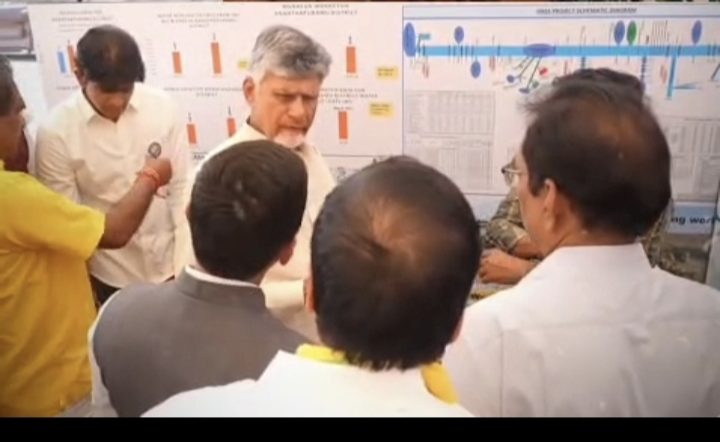 పయనించే సూర్యుడు న్యూస్ యాడికి ఏప్రిల్ 7 ముఖ్యమంత్రి చంద్రబాబు నాయుడు సోమవారం అనంతపురం జిల్లా, తాడిపత్రి నియోజకవర్గంలో పర్యటించారు. యాడికిలో జలధార కార్యక్రమంలో పాల్గొన్నారు. ఈ సందర్భంగా ప్రజావేదిక వద్ద ఏర్పాటు చేసిన స్టాళ్లు, ఫోటో ఎగ్జిబిషన్ను సందర్శించారు. జల సంరక్షణకు 100 రోజుల యాక్షన్ ప్లాన్ కు సంబంధించిన వివరాలను ఫొటో ఎగ్జిబిషనులో అధికారులు ప్రదర్శించారు. హార్టికల్చర్ ఉత్పత్తులను పరిశీలించారు. అనంతరం ప్రజావేదిక సభలో ప్రజలను ఉద్దేశించి ప్రసంగించారు.