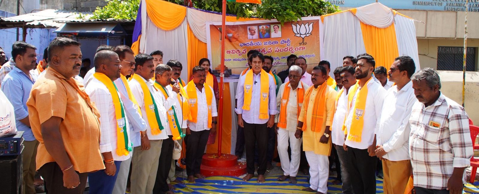 పయనించే సూర్యుడు ఏప్రిల్ 7 కర్నూలు జిల్లా ఇంచార్జ్ శ్రీకాంత్. భారతీయ జనతా పార్టీ ఆవిర్భావ దినోత్సవ సందర్భంగా ఆదోని పట్టణంలోని గణేష్ సర్కిల్ వీధిలో వార్డ్ ఇంచార్జ్ అంజయ్ కుమార్ అధ్యక్షతన నిర్వహించిన జండా ఆవిష్కరణ కార్యక్రమంలో ఆదోని శాసనసభ్యులు పీవీ పార్థసారథి పాల్గొన్నారు. వారు మాట్లాడుతూ భారతీయ జనతా పార్టీ కార్యకర్తగా ఉండడం అదృష్టంగా భావిస్తున్నానని, దేశంలోనే 11 కోట్ల మంది సభ్యత్వం కలిగిన అతిపెద్ద పార్టీ భారతీయ జనతా పార్టీ అని అన్నారు. బిజెపి సీనియర్ నాయకులు నాయకులు గోవిందరాజులు గౌడ్ మాట్లాడుతూ ఆదోనిలో మున్సిపల్ ఎన్నికల్లో మొట్టమొదటి సారిగా గెలిచిన సీటు గణేష్ సర్కిల్ అని అన్నారు. ఈ కార్యక్రమంలో ఆదోని అసెంబ్లీ కో కన్వీనర్ నాగరాజ్ గౌడ్, మార్కెట్ యార్డ్ వైస్ చైర్మన్ విజయ్ కృష్ణ బిజెపి మాజీ ప్రధాన కార్యదర్శి ఉపేంద్ర కుమార్, బిజెపి మండల అధ్యక్షులు బోయ మహదేవ్, మధు సుధన్ శర్మ, మాజీ కౌన్సిలర్ సురేష్, రసాలే గోవింద్ రావ్,శివ ,చంద్ర, వీరేశ్, కాశి, తాయప్ప, నాగిరెడ్డి, శ్రీకాంత్ తదితరులు పాల్గొన్నారు.