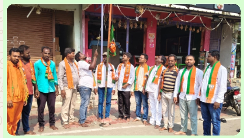 పయనించే సూర్యుడు ఏప్రిల్ 7 ( జనగామ ప్రతినిధి కమ్మగాని నాగన్న)జనగామ జిల్లా పాలకుర్తి మండల కేంద్రంలో భారతీయ జనతా పార్టీ 46వ ఆవిర్భావ దినోత్సవం సందర్భంగా పార్టీ జెండాలను ఎగరవేసి ఘనంగా నిర్వహించటం జరిగింది మండల కేంద్రంలో పార్టీ మండల అధ్యక్షులు మారం రవికుమార్ పార్టీ జెండాను ఎగురవేసి ఘనంగా నిర్వహించారు. ఈ సందర్భంగా మారం రవి కుమార్ మాట్లాడుతూ భారతీయ జనతా పార్టీ తొలినాళ్లలో పార్లమెంటులో కేవలం రెండు సీట్లు ఉన్నటువంటి సందర్భంలో కాంగ్రెస్ పార్టీ అధినేత్రి ఇందిరాగాంధీ భాజపాను హేళన చేస్తూ ఈ రెండు సీట్లతో మీరు ఏం సాధిస్తారు అని మాట్లాడిన సందర్భంలో అప్పటి భాజపా నేత అటల్ బిహారీ వాజ్పేయి మాట్లాడుతూ ఈరోజు మేము కేవలం రెండు సీట్లు ఉన్నాం కావచ్చు కానీ ఏదో ఒక రోజు మా శిష్యులు వస్తారు మేము మీ స్థానం లకు, మీరు మా స్థానంలకు వచ్చేందుకు పార్టీ కార్యకర్తలు అందరూ కృషి చేస్తారని చెప్పడం జరిగిందని వారి మాటకు తగ్గట్టుగానే రోజురోజుకు కాంగ్రెస్ పరిస్థితి దిగజారుతూ, భారతీయ జనతా పార్టీ ప్రపంచంలోనే అతిపెద్ద పార్టీగా అవతరించడం గా కాకుండానే అత్యధిక స్థానాలతో పార్లమెంటులో అతిపెద్ద పార్టీగా ఉంటూ అధికారాన్ని చేపట్టిందని రాబోయే కాలంలో కూడా భారతీయ జనతా పార్టీ మాత్రమే అధికారంలో కొనసాగుతుందని భారతీయ జనతా పార్టీ కుటుంబ పార్టీ కాదని, ప్రజాస్వామ్య యుతంగా పార్టీ రాజ్యాంగ నిబంధనల ప్రకారం ముందుకు పోయే పార్టీ అని రోజురోజుకు పార్టీ కార్యకర్తలు అభిమానులు పెరుగుతున్నారు తప్ప తగ్గలేదని అన్ని వర్గాల ప్రజలు భాజపాను ఆదరించాలని రానున్న రోజుల్లో దేశంలోనే కాకుండా రాష్ట్రంలో కూడా అధికారంలోకి భారతీయ జనతా పార్టీ వస్తుందని అన్నారు ఈ కార్యక్రమంలో జిల్లా కౌన్సిల్ మంచినీళ్ల ఉపేందర్ రెడ్డి, జిల్లా నాయకులు కడుదుల నిరంజన్ రెడ్డి, ,మండల ప్రధాన కార్యదర్శి వేల్పుల దేవరాజ్, ఉపాధ్యక్షులు పబ్బా సంతోష్, సీనియర్ నాయకులు దేవసాని కృపాకర్, నునావత్ శంకర్, సోషల్ మీడియా కన్వీనర్ బానోత్ చందు, చిక్కుడు అశోక్, మొగిలి వంశీ, కేరళ కరుణాకర్, వేమునూరి శ్రీనివాస్, నాయకులు తదితరులు పాల్గొన్నారు