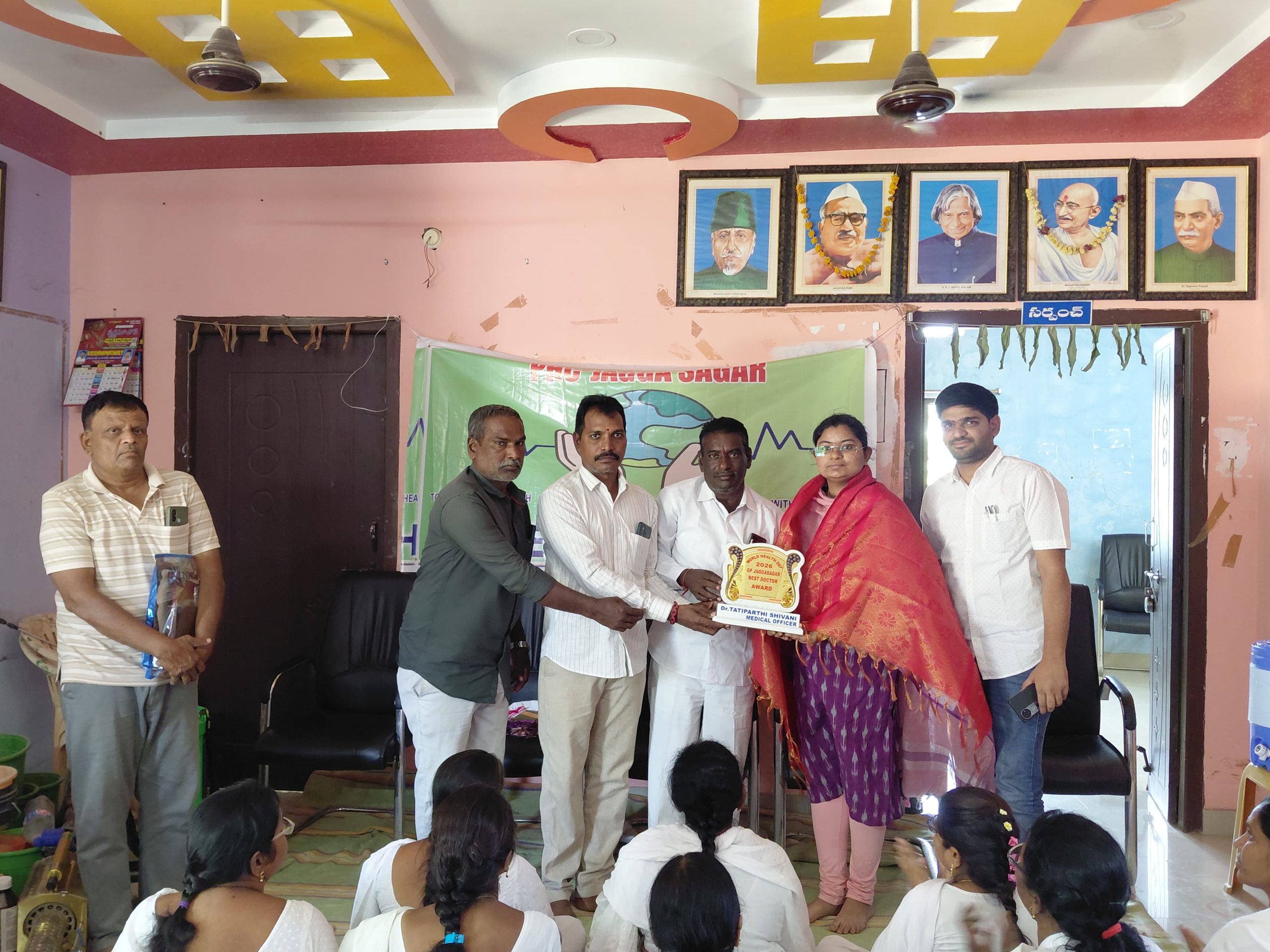 పయనించే సూర్యుడు న్యూస్ మెట్ పల్లి ఏప్రిల్ 8 ఉత్తమ సేవలందించిన వైద్యులు, ఏఎన్ఎం, ఆశా కార్యకర్తలకు సర్పంచ్ పుల్ల సాయి గౌడ్ చేతుల మీదుగా పురస్కారాలు ప్రపంచ ఆరోగ్య దినోత్సవం సందర్భంగా జగ్గాసాగర్ ప్రాథమిక ఆరోగ్య కేంద్రం (పీహెచ్ సి )లో పనిచేస్తున్న ఆరోగ్య సిబ్బందిని జగ్గాసాగర్ గ్రామ సర్పంచ్ పుల్ల సాయి గౌడ్ సత్కరించారు. గ్రామ ప్రజలకు ఉత్తమ వైద్య సేవలు అందిస్తున్నందుకు పీహెచ్సీ సిబ్బందికి అభినందనలు తెలియజేశారు. ఈ సందర్భంగా ఉత్తమ వైద్యురాలు గా డా. తాటిపర్తి శివాని ని సత్కరించారు. గ్రామ ప్రజలకు నాణ్యమైన వైద్య సేవలు అందిస్తూ ఆరోగ్య కార్యక్రమాలను సమర్థంగా నిర్వహిస్తున్నందుకు ఆమెను ప్రశంసించారు. అదేవిధంగా ఉత్తమ ఏఎన్ఎం గా ఎన్. ప్రియదర్శిని కి పురస్కారం అందజేశారు. అలాగే గ్రామాల్లో ఆరోగ్య సేవలను ప్రజలకు చేరవేస్తూ కృషి చేస్తున్న ఆశా కార్యకర్తలకు కూడా అవార్డులు ప్రదానం చేశారు. రంగారావుపేటకు చెందిన సిలువేరి మమత మరియు కొండ్రికార్ల గ్రామానికి చెందిన చిలువేరి రేఖ ఉత్తమ ఆశా కార్యకర్తలుగా ఎంపికయ్యారు. ఈ సందర్భంగా సర్పంచ్ పుల్ల సాయి గౌడ్ మాట్లాడుతూ గ్రామ ప్రజల ఆరోగ్య పరిరక్షణలో పీహెచ్సీ సిబ్బంది చేస్తున్న సేవలు ప్రశంసనీయమని తెలిపారు. ప్రభుత్వ ఆరోగ్య కార్యక్రమాలను సమర్థంగా అమలు చేస్తూ ప్రజలకు నాణ్యమైన సేవలు అందించాలని కోరారు. కార్యక్రమంలో మండల వైద్యాధికారి డా.ఎల్లాల అంజిత్ రెడ్డి, పంచాయతీ కార్యదర్శి ప్రశాంత్,11వ వార్డు సభ్యులు రాజేశం ,పీహెచ్సీ సిబ్బంది, గ్రామ ప్రజలు మరియు ఆరోగ్య కార్యకర్తలు పాల్గొన్నారు. ఆరోగ్య సిబ్బంది చేసిన సేవలకు గుర్తింపుగా ఈ అవార్డులు అందజేయడం పట్ల సిబ్బంది ఆనందం వ్యక్తం చేశారు.