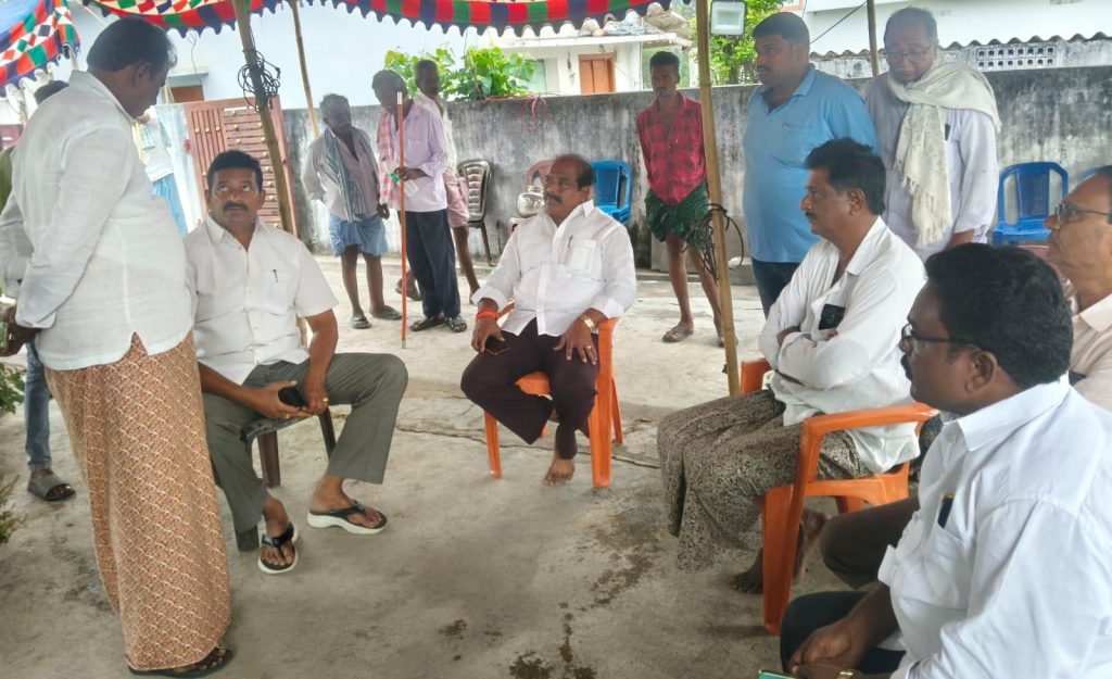 పయనించే సూర్యుడు పెనుగంచిప్రోలు మండలం రిపోర్టర్ ఆరుద్ర రమేష్ బాబుఎన్టీఆర్ డిస్టిక్ వార్తలు ప్రతినిధి ఎన్టీఆర్ జిల్లా జగ్గయ్యపేట నియోజకవర్గం ఏప్రిల్ 8 పెనుగంచిప్రోలు మండలం కొనకంచి గ్రామం మండల వైస్ ఎంపీపీ కనగాల శ్రీను మాతృమూర్తి రాములమ్మ ఆకస్మిక మరణాన్ని చింతిస్తూ ఈరోజు వారి నివాసానికి వెళ్లి భౌతిక దేహాన్ని సందర్శించి పూలమాలలు వేసి నివాళులర్పించిన జగ్గయ్యపేట నియోజకవర్గ వైఎస్ఆర్ సీపీ ఇన్-ఛార్జ్ తన్నీరు నాగేశ్వరరావు వారితోపాటు రాష్ట్ర ఎస్సీ సెల్ ప్రధాన కార్యదర్శి కన్నమాల శామ్యూల్, రాష్ట్ర రైతు విభాగ కార్యదర్శి నంబూరి రవి, పట్టణ కార్యదర్శి దార్ల ప్రసన్నకుమార్, తదితరులు నివాళులర్పించారు