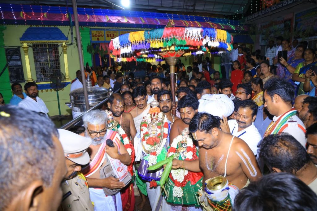 శ్రీ వెంకటేశ్వర స్వామి వారి దేవస్థానం నందు బ్రహ్మోత్సవములు చివరి రోజుద్వాదశ ప్రదక్షణాలు అనంతరం పవళింపు సేవ