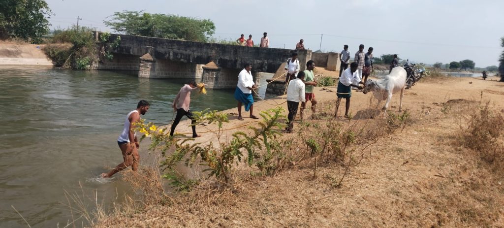 సాగర్ కాలవలో ప్రాణాపాయంలో గోమాత… ప్రాణాలకు తెగించి కాపాడిన రానా