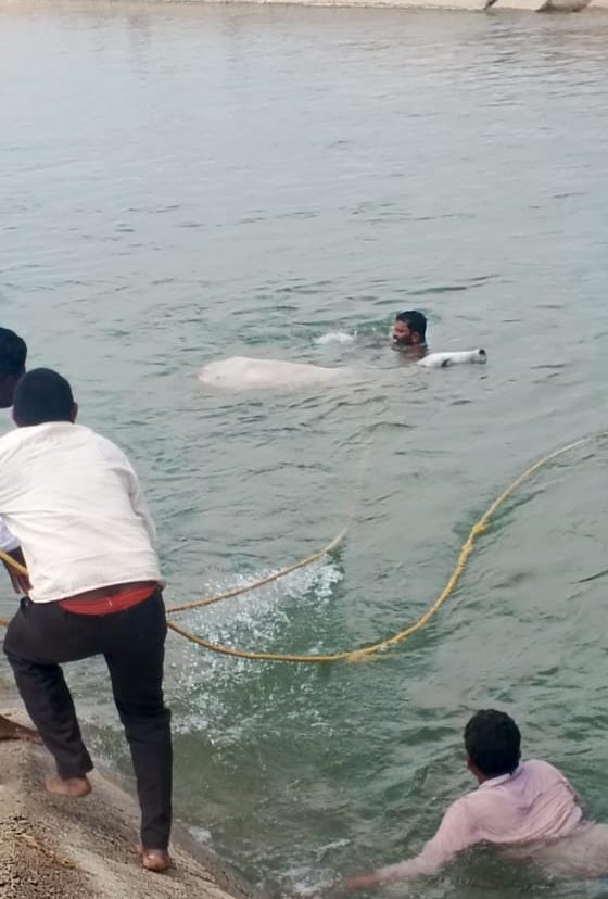 సాగర్ కాలవలో ప్రాణాపాయంలో గోమాత… ప్రాణాలకు తెగించి కాపాడిన రానా