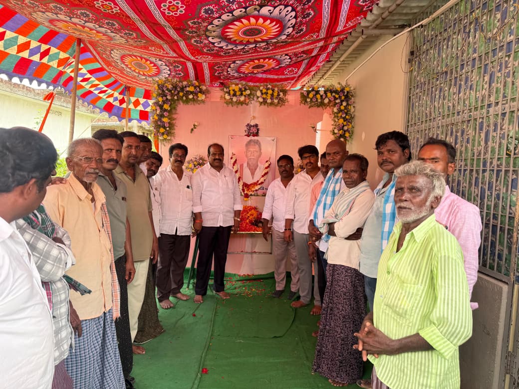పయనించే సూర్యుడు వాత్సవాయి మండలం రిపోర్టర్ తమ్మిశెట్టి వెంకట్రావు ఎన్టీఆర్ జిల్లా జగ్గయ్యపేట నియోజకవర్గం ఏప్రిల్ 10 వత్సవాయి మండలం పోల్లంపల్లి గ్రామానికి చెందిన కాశీమాల శ్రీను దశ-దిన కార్యక్రమంలో పాల్గొని వారి చిత్రపటానికి పూలమాలలు వేసి నివాళులర్పించిన జగ్గయ్యపేట నియోజకవర్గ వైఎస్ఆర్ సీపీ ఇన్-ఛార్జ్ తన్నీరు నాగేశ్వరరావు వత్సవాయి మండలం పోల్లంపల్లి గ్రామానికి చెందిన కాశీమాల శ్రీను మరణించిన విషయాన్ని తెలుసుకొని ఈరోజు వారి నివాసానికి వెళ్లి కుటుంబ సభ్యులను పరామర్శించి ప్రగాఢ సానుభూతి తెలియజేశారు వారితోపాటు మండల పార్టీ అధ్యక్షులు పోన్నం కోటేశ్వరరావు, గ్రామ పార్టీ అధ్యక్షులు యల్లావుల వీరాంజనేయులు, తమ్మినేని ప్రదీప్, రాష్ట్ర ఎస్సీ సెల్ ప్రధాన కార్యదర్శి కన్నమాల శామ్యూల్, రాష్ట్ర ప్రచార విభాగ కార్యదర్శి కాటేపల్లి రవి, రాష్ట్ర యువజన విభాగ కార్యదర్శి శివరాత్రి పృథ్వీరాజ్, మల్లరపు వేలద్రి, ముచ్చు రామకృష్ణ, పేరుబోయిన కృష్ణమూర్తి, జీతం వెంకటేశ్వర్లు, బెజ్జం పిచ్చయ్య, ధారా గంగరాజు, తదితరులు పాల్గొన్నారు