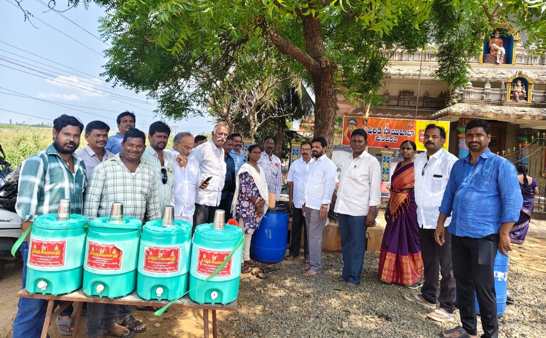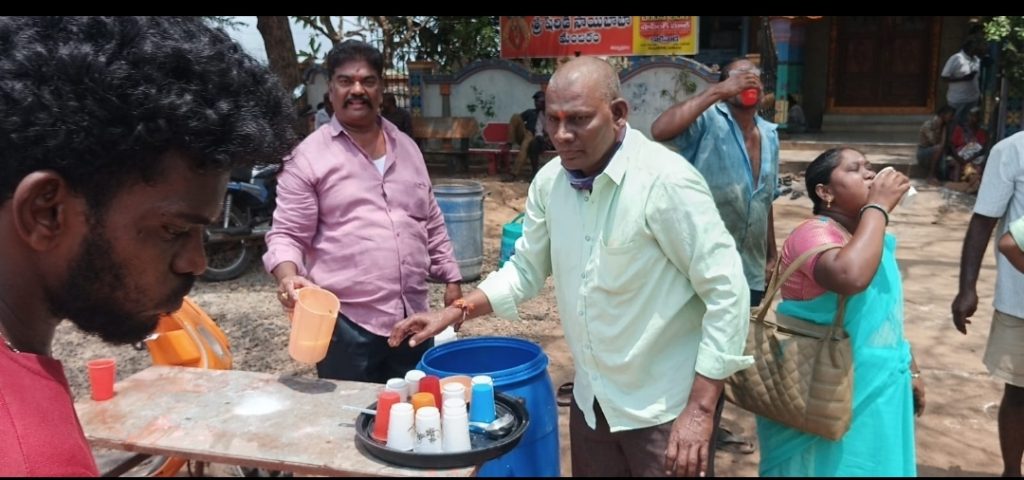 పయనించే సూర్యుడు ఏప్రిల్ 19, కాకినాడ జిల్లా కాకినాడ రూరల్ (బి వి బి) తిమ్మాపురం శిరిడి సాయిబాబా గుడి వద్ద శ్రీ సద్గురు సాయి బాబా ట్రస్ట్ వారి చలివేంద్రం జనసేన నాయకులు మాతారపు తాతాజీ ప్రారంభించిన చలివేంద్రం 19వ రోజుకి దిగ్విజయంగా ప్రతిరోజు ప్రయాణికులకు వాహందారులకు కూలింగ్ వాటర్ ప్రతి గురువారం మజ్జిగ పంచడం జరుగుతున్నది. అదే విధంగా రిటైర్డ్ ఎంప్లాయిస్ వారి చేతుల మీదుగా అన్నదానం జరుగుచున్నది శ్రీ సద్గురు సాయిబాబా ట్రస్ట్ అధ్యక్షులు మాట్లాడుతూ సాయిరాం రాంబాబు మీనాక్షి దంపతులు మాట్లాడుతూ మా గురుదేవులు మామిడిపల్లి లక్ష్మీ రామారావు ఆశీర్వచనములతో మూడు నెలలు చలివేంద్రం జరుగుతున్నదని తెలియపరుచున్నారు అదేవిధంగా పండ్రవాడ జంక్షన్ లో శ్రీ దుర్గా మల్లేశ్వర స్వామి జగన్మాత సదాశివ ప్రశాంత మందిరం దగ్గర పాలింకి సత్యనారాయణ గురుభవాని ఆధ్వర్యంలో ప్రతిరోజు కూలింగ్ వాటర్ ప్రతి శుక్రవారం మజ్జిగ పంచడం జరుగుతున్నది ఈ కార్యక్రమంలో రిటైర్డ్ ఎంప్లాయిస్ పి నాగేశ్వరరావు ఎస్సై రిటైర్డ్ మరియు రిటైర్డ్ ఎంప్లాయిస్ తోట తయారమ్మ తదితరులు పాల్గొనడం జరిగింది