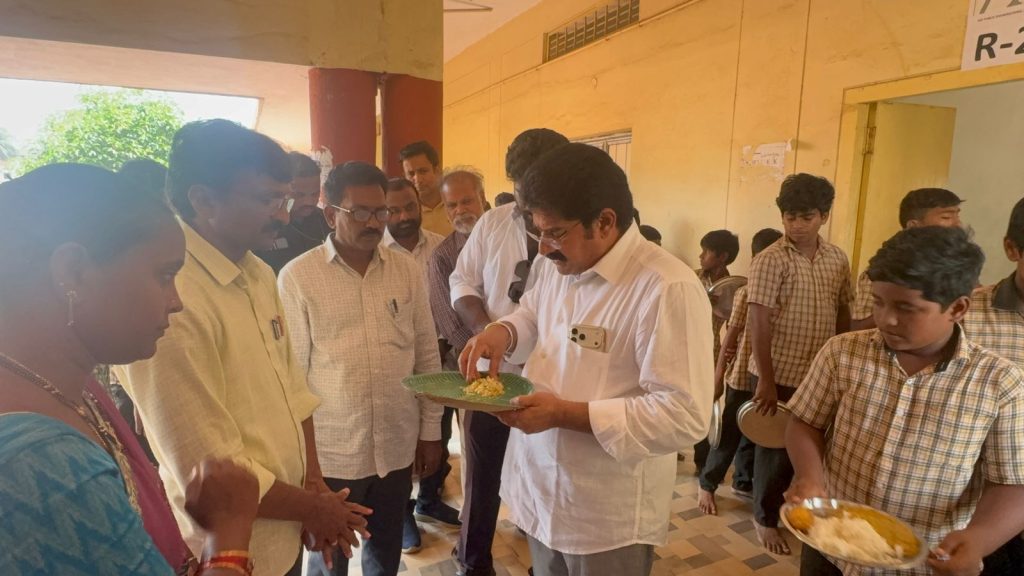 పయనించే సూర్యుడు న్యూస్ ఏప్రిల్ 11 అనపర్తి నియోజకవర్గం ఇంచార్జ్ సురేష్ రాష్ట్ర ప్రభుత్వం విద్యార్థుల ఆరోగ్యం కోసం కోట్లాది రూపాయలు ఖర్చు చేస్తూ పౌష్టికాహారాన్ని అందిస్తుంటే, క్షేత్రస్థాయిలో కొన్ని ఏజెన్సీలు విద్యార్థుల జీవితాలతో ఆటలాడుతున్నాయి. శుక్రవారం స్థానిక శ్రీరామరెడ్డి జిల్లా పరిషత్ ఉన్నత పాఠశాలలో మధ్యాహ్న భోజన పథకాన్ని అనపర్తి ఎమ్మెల్యే నల్లమిల్లి రామకృష్ణారెడ్డి ఆకస్మికంగా తనిఖీ చేశారు. మంత్రి నారా లోకేష్ ఆదేశాల మేరకు జరిగిన ఈ తనిఖీలో భోజనం నాణ్యతను చూసి ఎమ్మెల్యే తీవ్ర దిగ్భ్రాంతికి గురయ్యారు.అపరిశుభ్రత.. అస్తవ్యస్తం:ఎమ్మెల్యే స్వయంగా భోజనాన్ని రుచి చూసి, అక్కడ ఉన్న పరిస్థితులపై మండిపడ్డారు. వండిన అన్నం ముద్దగా ఉండటమే కాకుండా, ఆకుకూర పప్పులో అసలు ఆకుకూరలే కనిపించకపోవడంపై ఆగ్రహం వ్యక్తం చేశారు. ముఖ్యంగా విద్యార్థులకు పెడుతున్న గుడ్లు పాత నూనెలో వేయించినట్లుగా దుర్వాసన వస్తుండటం, గుడ్డు పెంకులు కూడా సరిగ్గా తీయకపోవడంపై తీవ్రంగా పరిగణించారు. వంట పాత్రలు, భోజనాన్ని తరలించే వాహనాలు అత్యంత అపరిశుభ్రంగా ఉండటంపై ఆయన అసహనం వ్యక్తం చేశారు.రెండేళ్లుగా అదే తీరు:ఈ సందర్భంగా ఎమ్మెల్యే మాట్లాడుతూ.. గత రెండేళ్లుగా ‘బుద్ధవరపు చారిటబుల్ ట్రస్ట్’ సరఫరా చేస్తున్న భోజనంపై విద్యార్థులు, ఉపాధ్యాయుల నుండి అనేక ఫిర్యాదులు వస్తున్నాయని గుర్తు చేశారు. నాణ్యమైన ఆహారం అందించడం సాధ్యం కాకపోతే ట్రస్ట్ వారు స్వచ్ఛందంగా తప్పుకోవాలని, అంతేకానీ ఇలాంటి నాసిరకం ఆహారం అందించి విద్యార్థుల ఆరోగ్యాన్ని దెబ్బతీయవద్దని హెచ్చరించారు. అధికారులకు ఆదేశం.. మంత్రికి ఫిర్యాదు: ఈ ఘటనపై వెంటనే విచారణ జరిపి చర్యలు తీసుకోవాలని జిల్లా విద్యాశాఖాధికారికి ఫోన్ ద్వారా ఎమ్మెల్యే ఆదేశాలు జారీ చేశారు. ప్రతిరోజూ పిల్లలకు ఎలాంటి ఆహారం అందుతుందో గమనించకుండా ఉదాసీనంగా వ్యవహరిస్తున్న ఉపాధ్యాయుల తీరును కూడా ఆయన తప్పుబట్టారు. ఈ విషయాన్ని వెంటనే మంత్రి దృష్టికి తీసుకెళ్లి, విద్యార్థులకు పరిశుభ్రమైన, నాణ్యమైన ఆహారం అందేలా కఠిన చర్యలు తీసుకుంటానని స్పష్టం చేశారు. ఈ కార్యక్రమంలో యువనేత మనోజ్ రెడ్డి మరియు ఇతర నాయకులు పాల్గొన్నారు.