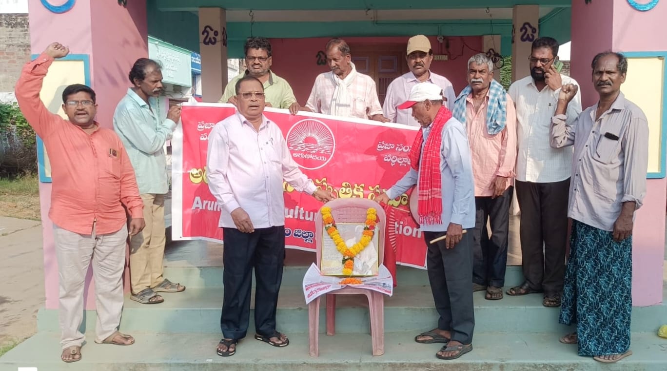 పయనించే సూర్యుడు న్యూస్ ఏప్రిల్ 11 పలాస నియోజకవర్గం ప్రతినిధి రత్నాల రమేష్. విప్లవ సాంస్కృతిక ఉద్యమ దృవతార కానూరు వెంకటేశ్వరరావు అని అరుణోదయ సాంస్కృతి సమైక్య జిల్లా అధ్యక్షులు సొర్ర రామారావు కొనియాడారు పలాస మండలం చిన్న నీలావతిలో కామ్రేడ్ కానూరి 11వ వర్ధంతి సందర్భంగా ఆయన చిత్రపటానికి రామారావు ముందుగా పూలమాల వేసి నివాళులర్పించారు అనంతరం రెండు నిమిషాలు మౌనం పాటించారు అమర కళావేత్త లకు జోహార్లు అర్పించారు కామ్రేడ్ కానూరి అరుణోదయ సాంస్కృతి సమైక్య వ్యవస్థాపకుడు 99 సంవత్సరాల వయసులో 2015లో అమరుడయ్యారు తన జీవితాంతం కళారంగానికి అంకితమయ్యాడు రాజ్యానికి వ్యతిరేకంగా కలలను అమ్ముకొని బతుకుతున్న కాలంలో కళ ప్రజల కోసం శ్రామిక జన విముక్తి కోసం అంకితమై ప్రజల పక్షం వహించి ఆటపాట మాట ద్వారా ఆయన ప్రజలకు అంకితమై విప్లవ సాంస్కృతికోద్యం ధ్రువతారగా నిలిచారని రామారావు కొనియాడారు సిపిఐ ఎంఎల్ న్యూడెమోక్రసీ జిల్లా సహాయ కార్యదర్శి వంకల మాధవరావు మాట్లాడుతూ కానూరు తాత సుబ్బారావు పాణిగ్రాహి తామర చినబాబు అరుణోదయ రామారావు వంటి అమరకళావేతలు ప్రజల పక్ష వహించారు నేటి దేశంలో ఫాశిష్ట ప్రమాదం పొంచి ఉంది సామ్రాజ్యవాద విస్తరణలో భాగంగా మూడో ప్రపంచ దేశాల పైన ఈరోజు ఇరాన్ పై అమెరికా ఇజ్రాయిల్ సామ్రాజ్యవాదం చేస్తున్న యుద్ధాన్ని ఖండించాలని కళాకారులు కవులు మేధావులు ప్రపంచ శాంతిని కాంక్షిస్తూ ప్రజల పక్షాన వహించాలని ఫాస్టెస్ట్ ప్రమాదానికి వ్యతిరేకంగా కళాలను గలాలను విప్పాలని ప్రజల పక్షాన నిలబడిన వాళ్లే నిజమైన ప్రజా కళాకారులు ఆ కోవలో కామ్రేడ్ కానూరు వస్తారని ఆయన అన్నారు ఐఎఫ్టియు జిల్లా ఉపాధ్యక్షులు జుట్టు వీరాస్వామి ఏఐకేఎంఎస్ జిల్లా ఉపాధ్యక్షులు వంకల పాపయ్య మురిపిండి తాతారావు ప్రగతిశీల కార్మిక సమైక్య జిల్లా కార్యదర్శి పుచ్చ దుర్యోధన పిడిఎస్యు రాష్ట్ర ప్రధాన కార్యదర్శి ఎం వినోద్ తదితరులు పాల్గొన్నారు