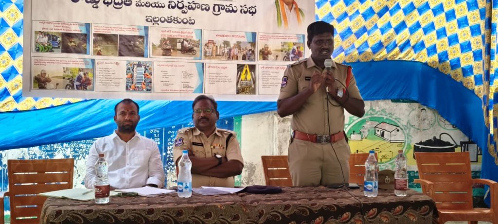 ఇల్లంతకుంట ఎస్సై సిరిసిల్ల అశోక్, మాట్లాడుతూ చిన్న చిన్న నిర్లక్ష్యాల వల్లే పెద్ద ప్రమాదాలు జరుగుతున్నాయని అన్నారు. యువత ట్రిపుల్ రైడింగ్ చేయవద్దని, మొబైల్ ఫోన్ ఉపయోగిస్తూ వాహనం నడపకూడదని సూచించారు. రాత్రి వేళల్లో వాహనాలపై రిఫ్లెక్టర్ స్టిక్కర్లు ఏర్పాటు చేసుకోవాలని, ట్రాక్టర్లు మరియు ఇతర వాహనాలకు లైట్లు తప్పనిసరిగా ఉండాలని తెలిపారు. పాఠశాల విద్యార్థులకు రోడ్డు భద్రతపై అవగాహన కార్యక్రమాలు నిర్వహిస్తామని తెలిపారు. సర్పంచ్ ఎం.రాజు మాట్లాడుతూ..గ్రామ అభివృద్ధికి ప్రజల సహకారం ఎంతో అవసరమని తెలిపారు. గ్రామంలో రోడ్డు భద్రతకు సంబంధించి ప్రజలు జాగ్రత్తలు పాటించాలని కోరారు. ముఖ్యంగా పాఠశాలల పరిసర ప్రాంతాల్లో వాహనాలను నెమ్మదిగా నడపాలని, యువత ట్రాఫిక్ నిబంధనలు తప్పనిసరిగా పాటించాలని సూచించారు.అలాగే గ్రామంలో ఉన్న సమస్యలను అధికారులు దృష్టికి తీసుకువచ్చి పరిష్కరించేందుకు గ్రామ సభలు ఎంతో ఉపయోగకరమని పేర్కొన్నారు. ప్రజాపాలన కార్యక్రమం ద్వారా గ్రామాభివృద్ధి మరింత వేగవంతం అవుతుందని, ప్రజలందరూ ప్రభుత్వ కార్యక్రమాలకు సహకరించాలని సర్పంచ్ కోరారు. అనంతరం ఎస్సై సిరిసిల్ల అశోక్, రోడ్డు భద్రతపై గ్రామ ప్రజలతో ప్రతిజ్ఞ చేయించారు. అనంతరం సర్పంచ్ ఎం.రాజు మరియు పాలకవర్గం ఆధ్వర్యంలో అడిషనల్ ఎస్పీ చంద్రయ్య, మరియు ఇల్లంతకుంట ఎస్సై సిరిసిల్ల అశోక్, శాలువాతో సన్మానించారు. గ్రామంలో రోడ్డు ప్రమాదాలు తగ్గించేందుకు పోలీసు శాఖ ప్రత్యేక చర్యలు చేపడుతుందని, ప్రజలు కూడా సహకరించాలని అధికారులు కోరారు. ఈ కార్యక్రమంలో ఉపసర్పంచ్ మూగు నాగరాజ్ శర్మ, వార్డు రేగుల కార్తీక్, మామిడి సుశీల, మామిడి శ్రీనివాస్, చేరాల వంశీకృష్ణ, రాకం సుమన్, అంతటి శ్రీకాంత్ గౌడ్, పంచాయతీ కార్యదర్శి చంద్రశేఖర్, గ్రామ పెద్దలు మరియు మహిళా సంఘాల సభ్యులు, ఆశ వర్కర్లు,అంగన్వాడీ టీచర్స్, తదితరులు పాల్గొన్నారు.