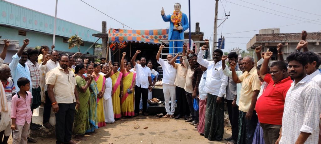పయనించే సూర్యుడు న్యూస్ :ఏప్రిల్ 15 ,తల్లాడ రిపోర్టర్ తల్లాడ మండలం అన్నారుగూడెం గ్రామంలో ఆ గ్రామ సర్పంచ్ గొడ్ల ప్రభాకర్, మరియు జై భీమ్ వారియర్స్ టీం సభ్యుల అధ్యక్షతన మహనీయుడు,విశ్వజ్ఞాని డాక్టర్ బి.ఆర్ అంబేద్కర్ 135 వ జయంతి వేడుకలు మంగళవారం పంచాయతీ కార్యాలయం మరియు అంబేద్కర్ భవన్ నందు ఘనంగా జరిగాయి. ఈ జయంతి వేడుకల్లో స్థానిక ప్రజా ప్రతినిధులు,అన్ని వర్గాల ప్రజలు, రైతులు, యువతి యువకులు,జై భీమ్ వారియర్స్ టీం సభ్యులు పాల్గొన్నారు. కార్యక్రమంలో వక్తలు మాట్లాడుతూ అంబేద్కర్ నిన్న జాతి వర్గాలకే మహనీయుడు కాదని ఆయన అందరివాడని తల్లాడ మాజీ ఎంపీపీ దొడ్డ శ్రీనివాసరావు పేర్కొన్నారు,ఆ గ్రామ సర్పంచ్ గొడ్ల ప్రభాకర్ మాట్లాడుతూ అంబేద్కర్ అన్ని వర్గాల ప్రజలకు ఆరాధ్యుడని ఈరోజు ఆయన రచించిన రాజ్యాంగం మూలంగానే ఈరోజు నాలాంటి సామాన్యునికి కూడా ఈ రకమైన గౌరవం దక్కుతుందని ఆయన సర్వజనులకు మహనీయుడని ఈ సందర్భంగా ఆయన అన్నారు. ఉప సర్పంచ్ కొమ్మినేని వెంకటేశ్వర్లు మాట్లాడుతూ అంబేద్కర్ స్త్రీలకు కూడా సమాన వాటా దక్కాలని ఆనాడే అనేక ఉద్యమాలు చేశారని ఆయన చేసిన ఉద్యమ ఫలితాలే ఈరోజు మహిళలు అనుభవిస్తున్న ఈ 33% అవకాశాలని ఈ సందర్భంగా ఆయన అన్నారు. ఈ కార్యక్రమంలో తల్లాడ మాజీ ఎంపీపీ దొడ్డ శ్రీనివాసరావు, గ్రామ సర్పంచ్ గొడ్ల ప్రభాకర్, ఉపసర్పంచ్ కొమ్మినేని వెంకటేశ్వర్లు, పంచాయతీ వార్డు మెంబర్స్, పంచాయతీ సెక్రెటరీ వెంకటేశ్వర్లు, గుమస్తా రమేష్, స్థానిక సీనియర్ నాయకులు బొమ్మగాని నాదం, దొడ్డ చిన్న శ్రీనివాసరావు,గోవిందు శ్రీనివాసరావు (ట్రాక్టర్) ఎస్సీ సెల్ నాయకులు ఇస్నపల్లి శ్రీనివాసరావు, యువ నాయకులు గోవిందు సురేష్, విద్యావంతుడు కోపెల రాము, గొడ్ల సురేష్,కందుల నారాయణ, ఇస్నపల్లి చిన్నకృష్ణ, దారా కృష్ణ,గొడ్ల మోసే, గొడ్ల జాన్ వెస్లీ, ప్రసన్నకుమార్, సీతారాములు, వెంకటరత్నం, అంగన్వాడి టీచర్లు, ఆశా కార్యకర్తలు, మల్టీపర్పస్ వర్కర్లు, పంచాయతీ సహా సిబ్బంది తదితరులు పాల్గొన్నారు.