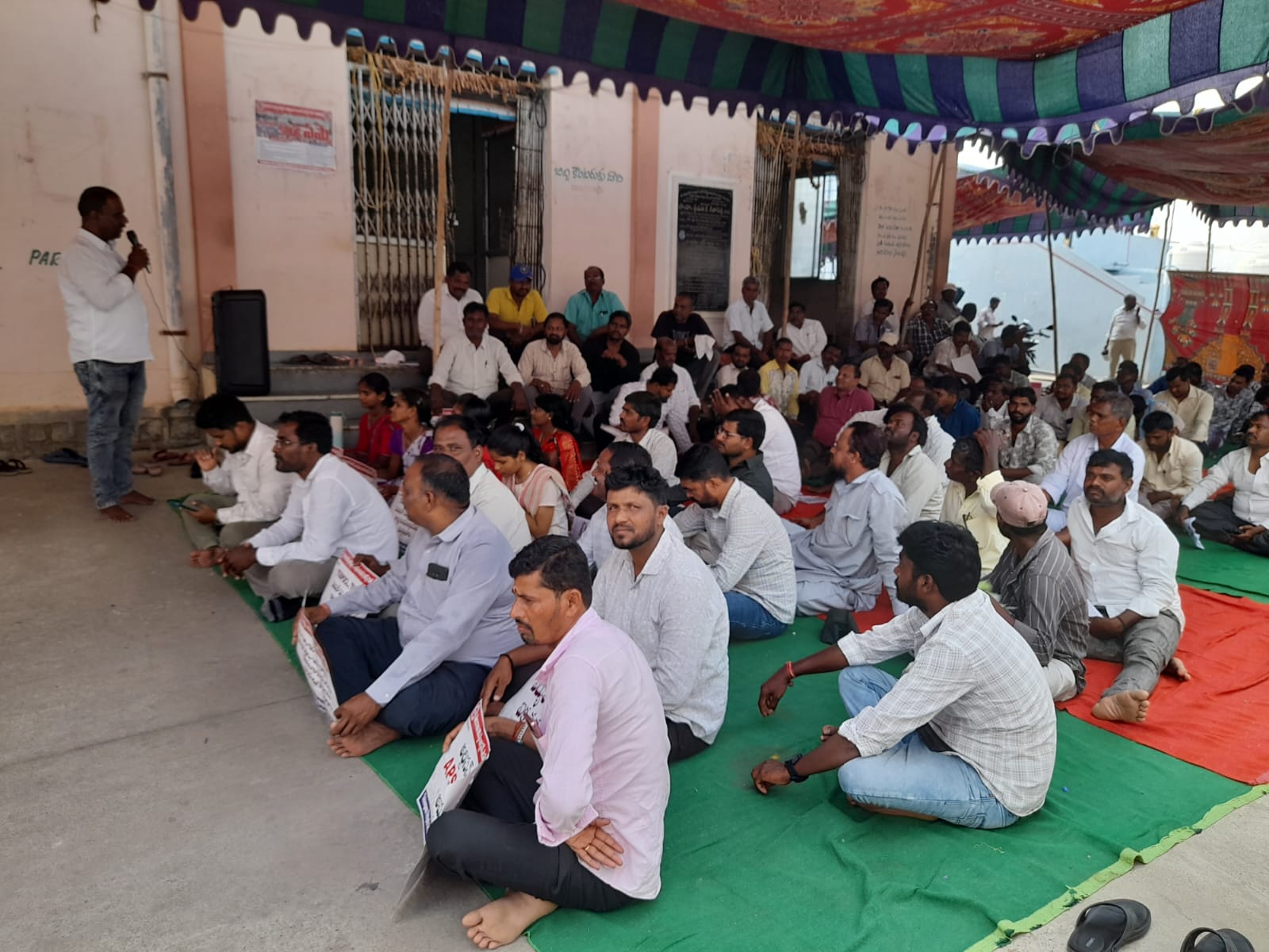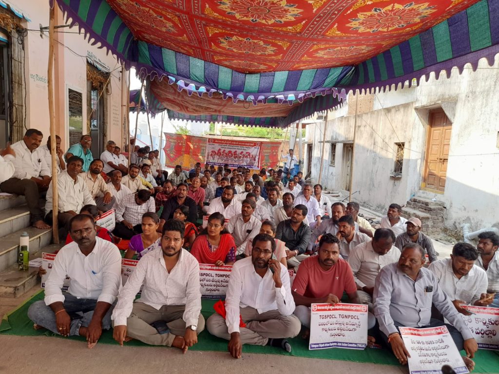 పయనించే సూర్యడు న్యూస్ గజ్వెల్ ఏప్రిల్ 15 గజ్వెల్ నియోజకవర్గం ఇంచార్జి ఏం ఎస్ రసూల్ సిద్దిపేట జిల్లా గజ్వెల్ విద్యుత్ డివిజన్ కేంద్రంలో కరోనాటోళ్ల నిర్వదిక సమ్మె నేటికీ ఏ డవ రోజు దీనికి మద్దతుగా తెలంగాణ రాష్ట్ర జె ఏ సి నాయకులు మద్దతు పలుకుతూ ఈ సందర్బంగా వారు మాట్లాడుతూ వి వన్ కన్వాషన్ అంటూ అర్హతను బట్టి ప్రమోషన్ ఇవాళలి పది పదే హేన్ వెల రూపాయల. జీతం తో రెగ్యులర్ ఉద్యగల అధికారులతో సమానంగా పని చేస్తున్నాము అని వారు అన్నారు పోయిన ప్రభుత్వం హామీ ఇచ్చి మాకు ఏ టు కాకుండా నేటెంటముంచింది కాంగ్రెస్ ప్రభుత్వం అధికారంలోకి వచ్చి రెండు నారా సంవత్సరం అవుతుంది గత ఏ లక్షణలలో డి ప్యూటీ సీఎం బ్బట్టి తెలంగాణ అసంబ్లీ లో బి ఆర్ ఎస్ ప్రభుత్వం ఉన్నప్పుడు అర్హత తగ్గట్టు వేతనం రెగ్యులర్ చేయాలనీ చెప్పిన మాటే గుర్తు తెస్తున్నాము అని వారు అన్నారు మాకు ఏ పార్టీ తో సంబంధం విరోదాం లేదు అని వారు స్పష్టం చేసారు ఈ కార్యక్రమం లో రాష్ట్ర స్థాయి జె ఏ సి నాయకులు జిల్లా నాయకులు కార్మికులు మహిళా కార్మికులు తదితరులు పాల్గొన్నారు