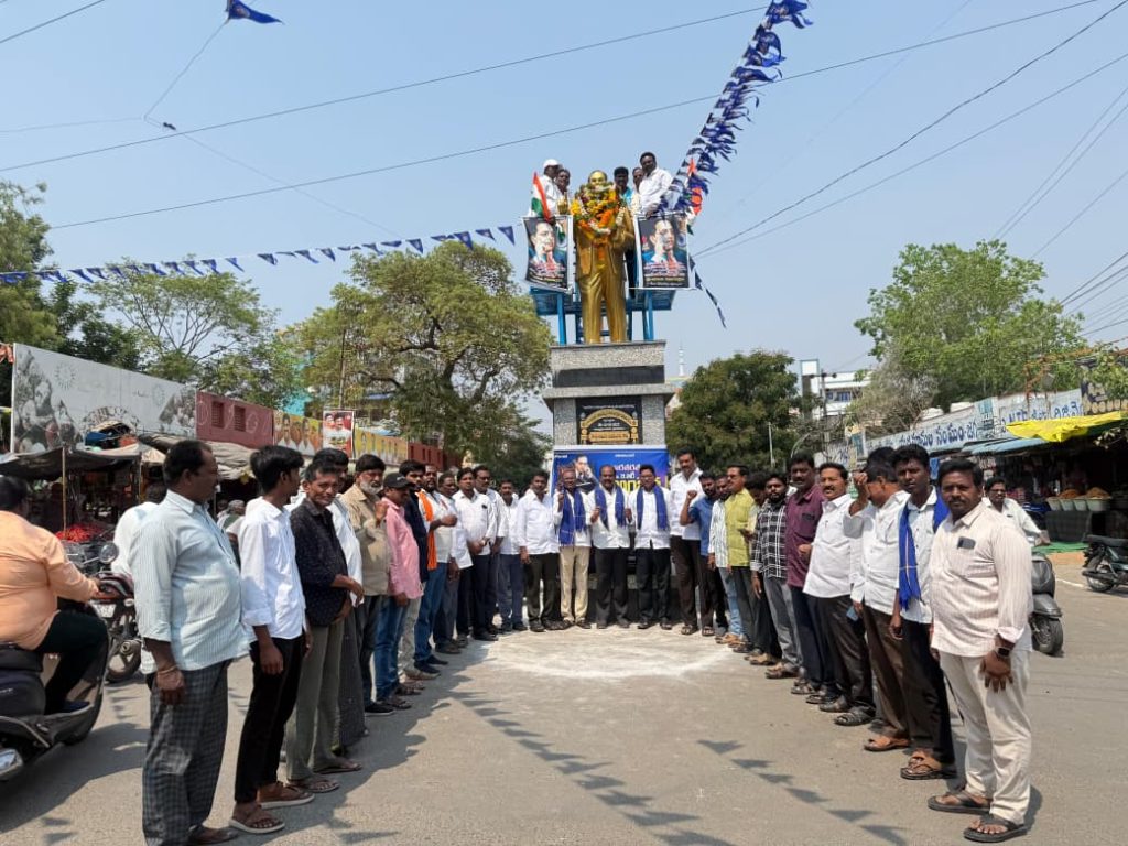 పయనించే సూర్యుడు రిపోర్టర్ జగయ్యపేట నియోజకవర్గం ఇన్చార్జి చేని రాంబాబు ఎన్టీఆర్ జిల్లా జగయ్యపేట్ట నియోజకవర్గం ఏప్రిల్ 15 జగయ్యపేట్ట పట్టణంలోని ఈరోజు న భారత రాజ్యాంగ నిర్మాత, మహానీయుడు డాక్టర్ బి.ఆర్. అంబేద్కర్ 135 వ జయంతి సందర్భంగా జగ్గయ్యపేట పట్టణంలోని రైతు బజార్ వద్ద, సత్యనారాయణపురం సాయిబాబా గుడి దగ్గర, క్రిస్టియన్ పేట వద్ద, ఇందిరా నగర్ వద్ద వైసీపీ నాయకులుతో కలిసి ఆయన విగ్రహాలకి పూలమాలలు వేసి ఘన నివాళులర్పించిన జగ్గయ్యపేట నియోజకవర్గ వైఎస్ఆర్ సీపీ ఇన్-ఛార్జ్ తన్నీరు నాగేశ్వరరావు ఈ సందర్భంగా మాట్లాడుతూ డాక్టర్ అంబేద్కర్ సమానత్వం, సామాజిక న్యాయం కోసం చేసిన సేవలు చిరస్మరణీయమని తెలిపారు దేశ ప్రజలందరికీ సమాన హక్కులు కల్పించే దిశగా ఆయన చేసిన కృషి అపూర్వమని కొనియాడారు ప్రతి ఒక్కరూ అంబేద్కర్ ఆశయాలను ఆచరణలో పెట్టి సమాజ అభివృద్ధికి కృషి చేయాలని పిలుపునిచ్చారు వెనుకబడిన వర్గాల అభ్యున్నతికి, విద్యా ప్రాధాన్యతకు, సామాజిక సమానత్వానికి తన జీవితాన్ని అంకితం చేశారు. భారత రాజ్యాంగ రూపకల్పనలో ఆయన చేసిన కృషి దేశానికి మార్గదర్శకంగా నిలిచింది ఈ కార్యక్రమంలో మండల అధ్యక్షులు బూడిద నరసింహారావు, జిల్లా ప్రధాన కార్యదర్శి చల్లా వైకుంఠ రావు, రాష్ట్ర ఎస్సీ సెల్ విభాగ ప్రధాన కార్యదర్శి కన్నమాల శామ్యూల్, రాష్ట్ర బీసీ సెల్ విభాగ ప్రధాన కార్యదర్శి బత్తుల రామారావు, రాష్ట్ర ఎస్సీ సెల్ విభాగ కార్యదర్శి దర్శనాల వెంకటరమణ, రాష్ట్ర లీగల్ సెల్ విభాగ కార్యదర్శి పసుపులేటి సత్య శ్రీనివాసరావు, రాష్ట్ర రైతు విభాగ కార్యదర్శి నంబూరి రవి, జిల్లా యువజన విభాగ ఉపాధ్యక్షులు బజార్ సాయి, జిల్లా వాణిజ్య విభాగ కార్యదర్శి గొట్టిపాళ్ళ సురేష్, జిల్లా ముస్లిం మైనార్టీ కార్యవర్గ సభ్యులు షేక్ ఖాదర్, షేక్ ఖాదర్ బాబు, నియోజకవర్గ ఎంప్లాయిస్ అధ్యక్షులు దర్శి వెంకటేశ్వర్లు, మండల సోషల్ మీడియా, విద్యార్థి విభాగాల అధ్యక్షులు పల్లెబోయిన ఉమారామ్ బరిగెల వినోద్, మండల కార్యదర్శి గడ్డం రామకృష్ణ, పట్టణ ప్రధాన కార్యదర్శి పింగళి నరసింహారెడ్డి, పట్టణ ముస్లిం, ఎస్సీ సెల్, యువజన, సంస్కృతిక, సోషల్ మీడియా, విభాగాల అధ్యక్షులు పిడమర్తి ప్రభు, రామిని ఉపేందర్ రెడ్డి, సయ్యద్ సైదాలి, చెవుల చిన్నికృష్ణ, అమ్మరవపు హనుక్, పట్టణ 3, 16, 23, 24, 26, 30, 31వార్డుల అధ్యక్షులు వేల్పుల ప్రసాద్, వేముల విజయ్, షేక్ హసన్, గుంజ రోశయ్య, రుంజ నాగేశ్వరరావు దార్ల ప్రసన్నకుమార్, మన్నే అప్పారావు, తదితరులు పాల్గొన్నారు