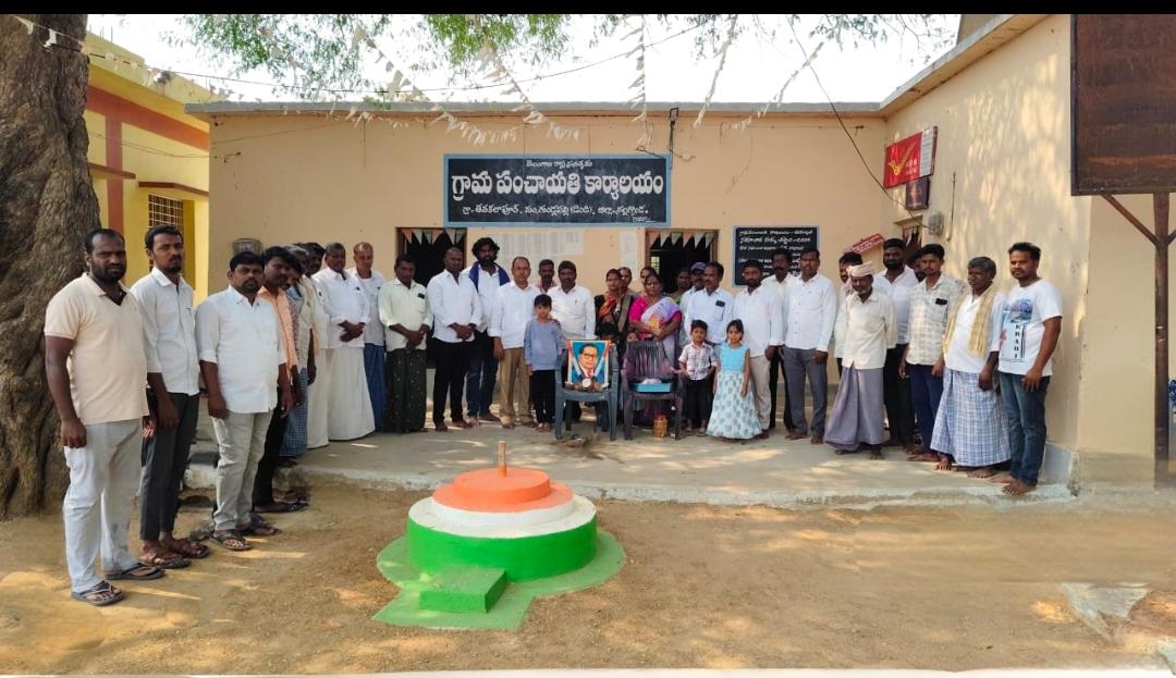 పయనించే సూర్యుడు ఏప్రిల్ 15 ప్రతినిధి గుమ్మకొండ సుధాకర్ డిండి మండలం నల్గొండ జిల్లా ఈరోజు తవక్లాపూర్ గ్రామంలో గ్రామపంచాయతీ కార్యాలయం దగ్గర భారత రాజ్యాంగ నిర్మాత భారతరత్న డాక్టర్ బీఆర్ అంబేద్కర్ 135 వ జయంతి సందర్భంగా *తవక్లాపూర్ గ్రామ సర్పంచ్ పొన్నగంటి కృష్ణయ్య ఆధ్వర్యంలో ఆ మహనీయునికి ఘన నివాళులు అర్పించారు అణగారిన వర్గాల సంక్షేమం మహిళల సాధికారత కోసం బాబాసాహెబ్ గారు చేసిన అవిశ్రాంత పోరాటం ప్రపంచానికి స్ఫూర్తిదాయకమని కొనియాడారు అలానే బడుగు బలహీన వర్గాల ఆశాజ్యోతి సమసమాజ స్వాప్నికుడు భారత రాజ్యాంగ నిర్మాత భారతరత్న డా|| బి.ఆర్. అంబేద్కర్ జయంతి సందర్భంగా ఆ మహనీయునికి ఘనంగా నివాళులు అర్పించడం జరిగింది ఈ కార్యక్రమంలో వార్డు మెంబర్స్ అంగన్వాడి టీచర్స్ తవక్లాపూర్ గ్రామ ప్రజలు యువకులు గ్రామపంచాయతీ సిబ్బంది పాల్గొనడం జరిగింది
