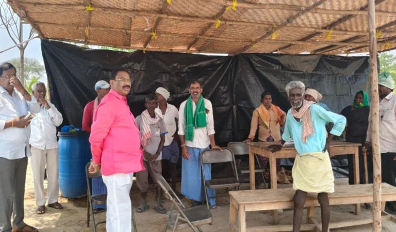 పయనించే సూర్యుడు న్యూస్ మునుగోడు ఏప్రిల్ 15. మునుగోడు మండల కేంద్రంలోని ధాన్యం కొనుగోలు కేంద్రాన్ని మునుగోడు మాజీ ఎమ్మెల్యే కూసుకుంట్ల ప్రభాకర్ రెడ్డి మంగళవారం పరిశీలించారు. ఈ సందర్భంగా అక్కడ ఉన్న రైతులతో మాట్లాడి వారు ఎదుర్కొంటున్న సమస్యలను తెలుసుకున్నారు. రైతులు ఎండాకాలంలో ధాన్యాన్ని కొనుగోలు కేంద్రాలకు తీసుకొచ్చి రోజులు గడుస్తున్నప్పటికీ అధికారులు తూకం వేయడంలో ఆలస్యం చేస్తున్నారని, నాణ్యత (మాయిశ్చర్) పేరుతో ఇబ్బందులు పెడుతున్నారని ఆవేదన వ్యక్తం చేశారు. తూకం ప్రక్రియ సక్రమంగా జరగకపోవడంతో తీవ్ర ఇబ్బందులు ఎదురవుతున్నాయని తెలిపారు. వేసవి కాలంలో కొనుగోలు కేంద్రాలు సమయానికి ప్రారంభం కాకపోవడం వల్ల రైతులు ఇబ్బందులు పడుతున్నారన్నారు. వెంటనే సంబంధిత జిల్లా కలెక్టర్, అధికారులతో ఫోన్ ద్వారా మాట్లాడి, కొనుగోలు కేంద్రాలను త్వరితగతిన ఏర్పాటు చేసి తూకం ప్రక్రియను వేగవంతం చేయాలని సూచించారు. అలాగే రైతులకు ఎలాంటి ఇబ్బందులు కలగకుండా తగిన చర్యలు తీసుకోవాలని అధికారులను కోరారు. రైతులు కూడా ధాన్యాన్ని సరిగ్గా ఎండబెట్టి నాణ్యత ప్రమాణాలు పాటించాలని సూచించారు. రైతు సంక్షేమం కోసం ఎల్లప్పుడూ తమ వంతు కృషి కొనసాగిస్తామని తెలిపారు.